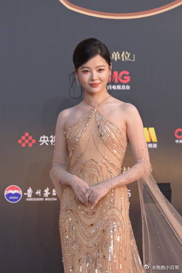 辛芷蕾的肩颈线条辛芷蕾挂脖亮片纱裙 辛芷蕾穿这条挂脖亮片纱裙,肩颈线条显得特别修