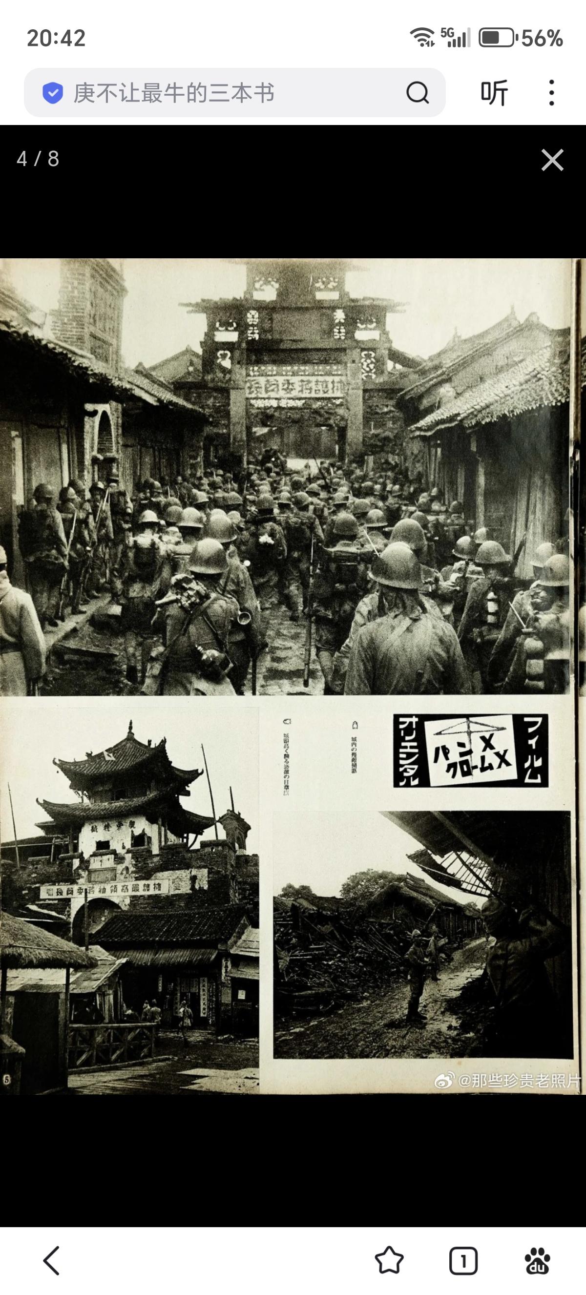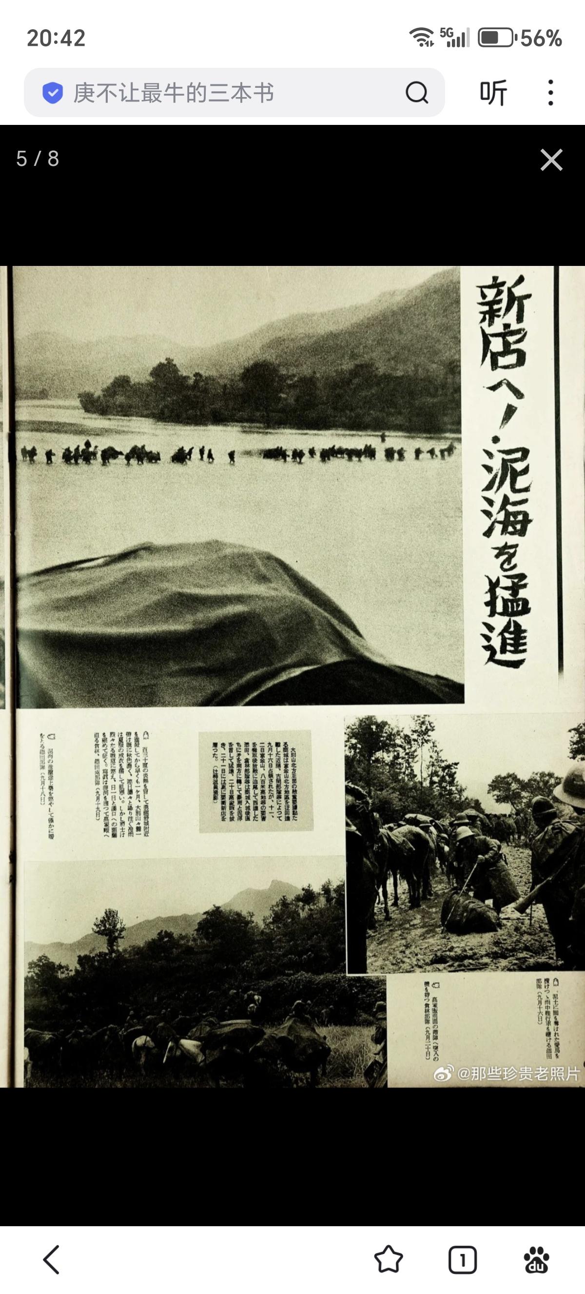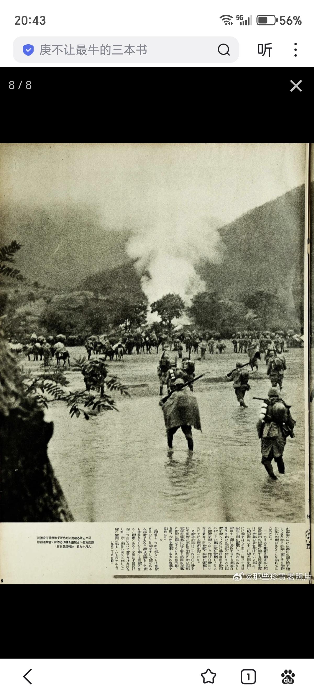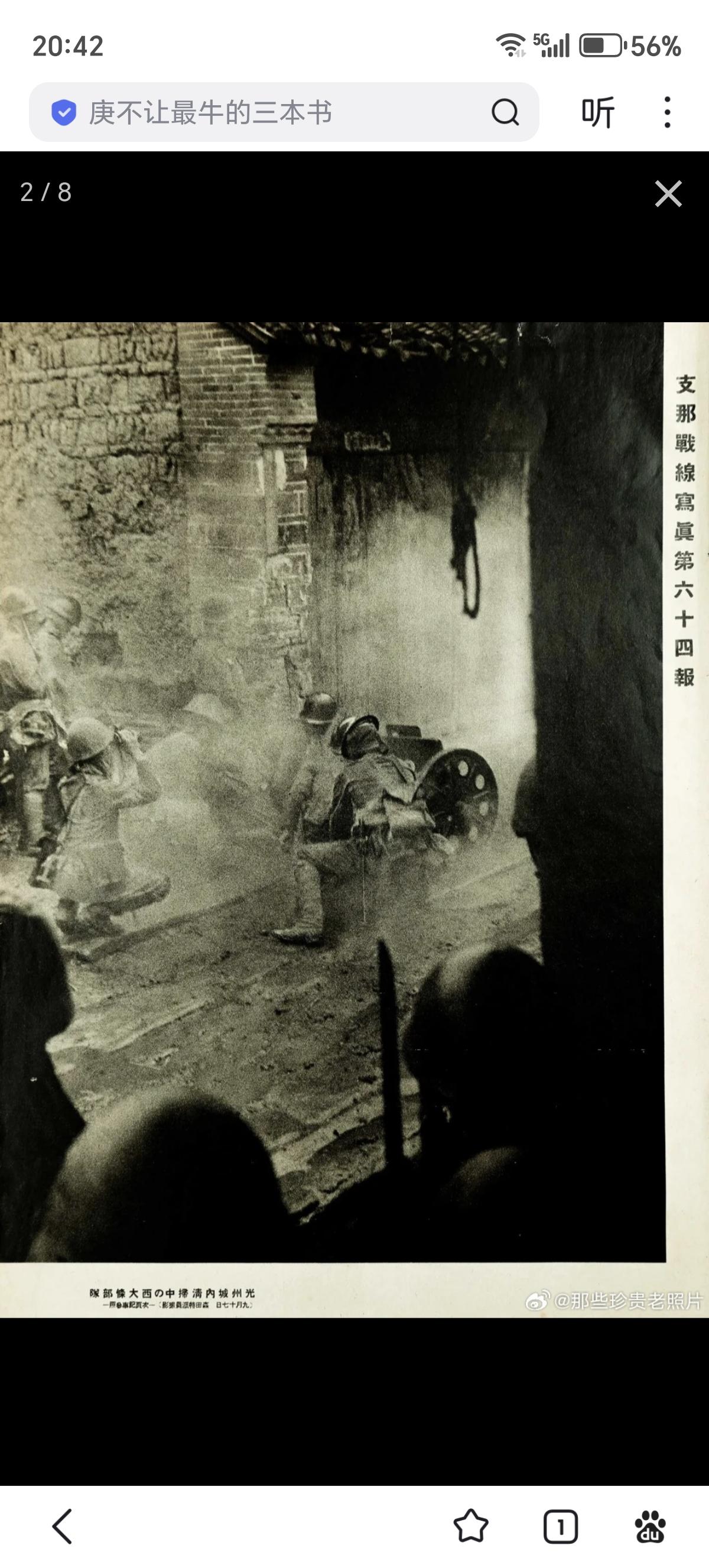 日军画报中的侵略武汉:占领光州、逼近信阳 此为日本内宣杂志日中战线写真/日中战线写真第六十四报 1938年10月12日出版 民国二十七年十月十二日出版 昭和十三年十月十二日出版 封面:庐山南麓山顶开火的日军重机枪。 图二:光州城内巷战的日军部队。(九月十七日) 图三:攻略大别山北麓要冲光州县城 图四:“扫荡”城内残敌 图五:新店——泥海中猛进(九月下旬) 图六:泥泞的大雨中燃烧植物取暖的日军 图七:战局展望“京汉线进逼信阳” 图八:九月十九日在冷雨中渡河向信阳进发的日军。