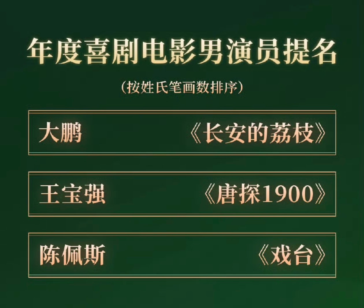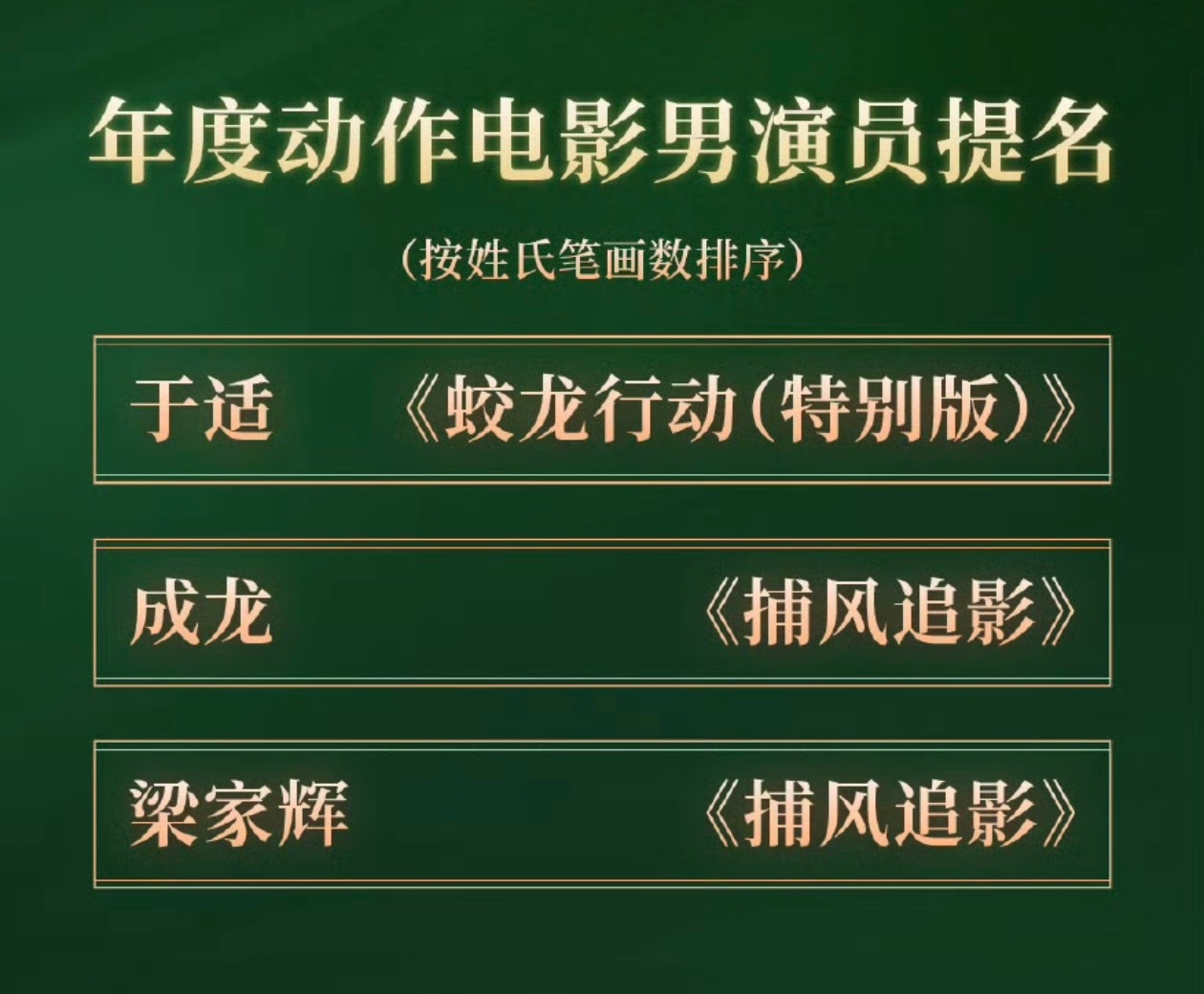 首届CMG中国电影盛典今晚颁奖,一共会颁出3位影帝和3位影后,能理解因为类型片表演向来在表演评奖中不占优势,所以单独分出来了喜剧和动作两个类型,但咱一年到头质量好的喜剧片和动作片数量本就不多,提名都凑不够五个,这批发的影帝影后含金量也就大打折扣了,没必要这么搞