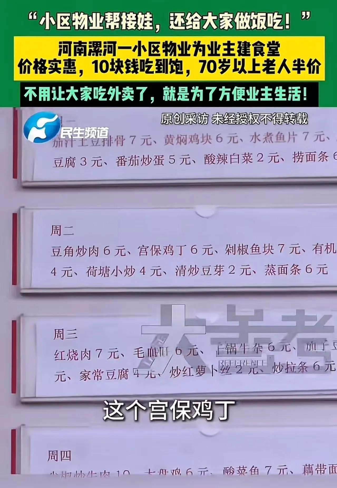“这个小区物业费没人催,却越收越快!”河南漯河一处普通小区,最近被不少人盯上了,原因不复杂,业主主动交钱,还排队,甚至有人提前半年就把钱交了,这种场面在当下的物业行业里并不常见。 同样是物业收费,很多地方却是另一种景象,业主拖着不交,物业上门催缴、贴通知、走诉讼流程,双方关系紧张,又耗精力又耗时间,到了年底还容易爆发集中矛盾,这种对立状态,已经成了行业常态。 这个小区换了一套做法,物业没有先盯收费,而是先改服务结构,也盯住两个高频问题,也就是吃饭和接娃,又是每天都会发生的刚需,同时影响家庭情绪,也直接影响业主对物业的评价。 先说吃饭这件事,物业把闲置空间改成食堂,也做平价菜,也做现做现卖,同时价格控制在居民可接受区间,又保持基本利润空间,还通过玻璃厨房做透明操作,食材来源、加工流程、卫生情况都能被看到,这一套下来,信任感就建立了。 价格也很具体,素菜几块钱一份,荤菜也不高,单人晚餐十来块就能解决,还省掉外卖配送费,也减少等待时间,同时避免食品来源不清的问题,这种替代关系一旦形成,外卖需求自然下降。 老人群体也被纳入考虑,70岁以上半价,这不是情绪设计,是精准成本让渡,因为老年人消费频率高、稳定性强,同时也能提升小区整体活跃度,这种安排看似优惠,其实在做结构优化。 再说接娃问题,物业安排专人固定时间到学校门口,也登记孩子信息,也对接家长需求,同时形成稳定接送链条,这一项服务直接解决双职工家庭的时间冲突,也降低请假成本,还减少安全焦虑。 遇到天气变化,也提供车辆接送,这种应对机制不是临时起意,而是把不确定因素纳入服务流程,也就是说,物业把“突发情况”当成常规管理的一部分来处理,这一点在传统物业体系里并不常见。 这两件事叠加起来,效果就出来了,下班不用买菜做饭,也不用等外卖,也不用担心孩子放学没人接,同时减少家庭内部协调成本,也释放时间精力,业主的日常压力被明显削减。 费用问题反而变简单了,服务已经提前兑现,价值是可见的,业主自然会把物业费当作“服务购买”,而不是被动支出,也就不会产生强烈抵触情绪,这种转变,是认知层面的改变。 对比其他小区,也能看出差异,有些物业把合同当成核心工具,也把收费当成主要目标,同时忽略服务质量,又缺乏细节管理,也没有长期运营思路,结果就是不断催费,不断产生纠纷。 这个案例提供了一个很直接的逻辑,收费难,并不只是价格问题,也不是业主习惯问题,还与服务结构直接相关,只要能覆盖高频需求,也能解决具体问题,费用就不再是矛盾焦点。 从运营角度看,食堂未必高利润,接送服务也增加成本,但带来的结果是稳定现金流,也减少催收成本,又降低纠纷处理成本,还提升口碑,这是一种用服务换效率的方式。 再往后看,这种模式一旦被复制,也可能形成行业分层,一部分物业继续依赖合同和收费手段,另一部分则转向服务驱动,也通过差异化获得竞争空间,这种变化已经开始出现。 业主行为也在变化,越来越多的人开始按“值不值”来判断支出,也会用实际体验来决定是否配合物业工作,而不是简单按合同执行,这种趋势,对物业提出了更高要求。 所以问题不在于业主愿不愿意交钱,也不在于制度是否完善,而在于服务是否具体、是否稳定、是否能持续解决问题,只要这三点成立,收费本身就会变成顺带完成的结果。