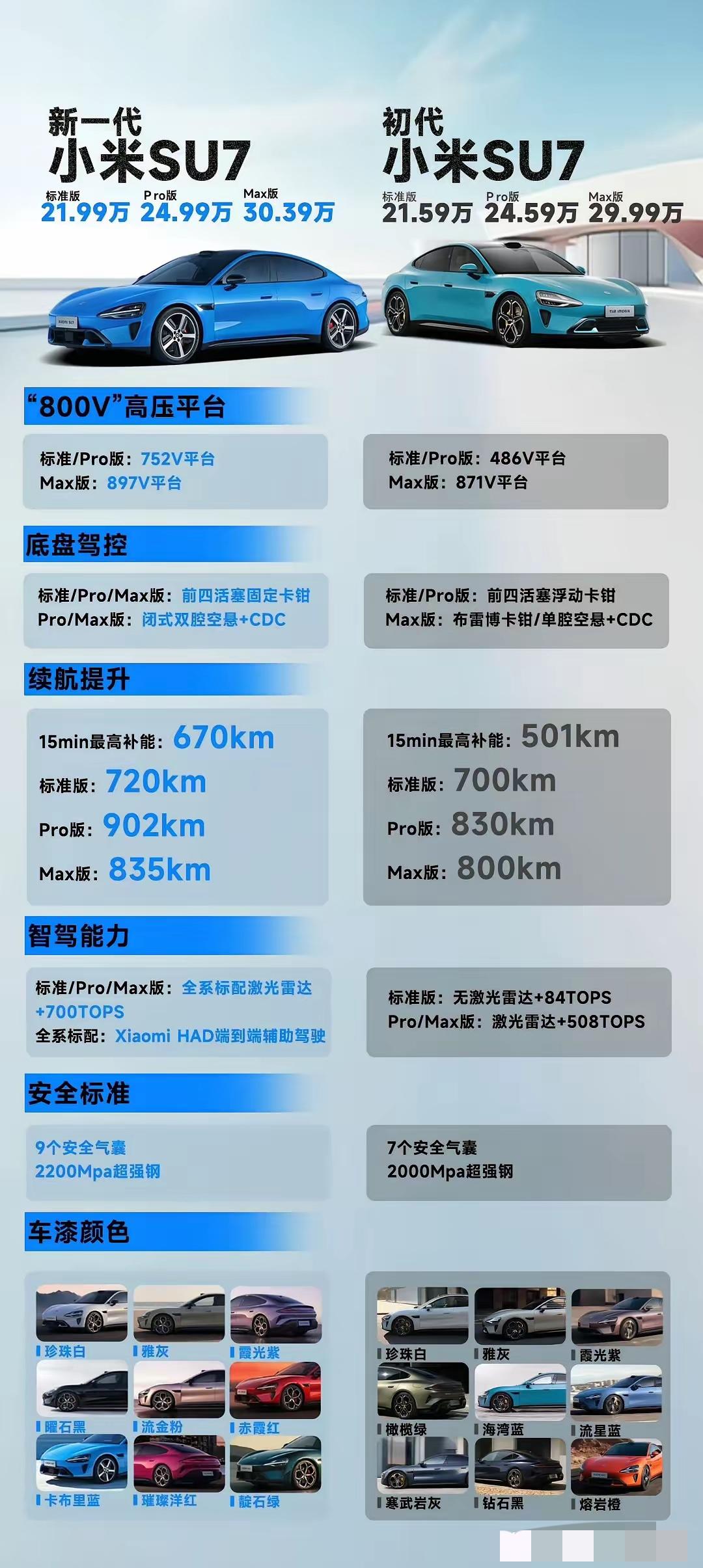 别着急,其实新一代SU7起售价根本不是21.99万,我这个YU7车主看得是直跺脚呀。 因为我估计99%的人都会加6500块钱升级这个“科技舒享套装”,起售价直接变成22.64万了,不得不说,还是雷总会玩(褒义),让你花钱又让你觉得值😃 咱先把这6500块钱的账给大伙算明白,就知道为啥没人能忍住不选了。这套装原价15000,限时直接砍到6500,相当于4.3折拿下。里面的东西全是实打实的硬货:56英寸的HUD抬头显示,开车不用低头瞟导航,高速上安全感直接拉满;电动吸合门,再也不用怕关车门太大力震得心疼;麂皮绒车顶、电动调节方向盘、后视镜防眩目,还有迎宾灯,这些配置单拎出来,后期改装没个大几万根本下不来。说白了,这不是让你多花钱,是给你一个用小钱把车从“够用”拉到“豪华”的机会,换谁不心动? 再看看新款SU7的整体升级,就更懂老车主为啥跺脚了。老款标准版连激光雷达都没有,智驾算力只有84TOPS,新款直接全系标配激光雷达+700TOPS算力,HAD端到端辅助驾驶全给你拉满。三电系统也彻底换代,老款486V的平台直接升级到752V,Max版更是干到897V,15分钟补能从501km飙升到670km,续航也全面上涨,标准版直接干到720km,Pro版更是破了900km大关。安全配置也拉满,从7个安全气囊升级到9个,2000Mpa的超强钢换成2200Mpa,连底盘卡钳都从浮动式换成固定式,Pro版以上直接给闭式双腔空悬+CDC,老款Max才有的配置,新款Pro直接下放。 网上的评论直接分成了两派,吵得热火朝天。准车主们全在喊“雷军太良心”,发布会刚结束34分钟就狂揽1.5万台锁单,大家都算得门清:多花4000块,换来的是超过2万的成本升级,再加上6500块的舒享套装,花小钱办大事,这性价比在20万级纯电轿跑里根本找不到对手。 可我们这些老YU7、初代SU7车主,心里那叫一个五味杂陈。当初等车等了好几个月,花着差不多的钱,结果转头新款就把我们吐槽的所有痛点全改了:座椅硬、天幕晒、智驾不够用、补能慢,全给你安排得明明白白。更扎心的是,人家新款加量还没怎么涨价,我们这些第一批吃螃蟹的人,直接成了“49年入国军”,开着车都觉得亏得慌。 有人说雷军这是把手机行业的“快迭代”玩法带到了汽车圈,可汽车毕竟不是手机,几万块的差价不是说换就换的。小米这波操作,确实把新款的性价比拉到了极致,可也实实在在伤了老车主的心。毕竟第一批车主的信任,才是小米汽车能走到今天的根基,怎么平衡新品竞争力和老车主的权益,才是雷军接下来要面对的最大难题。su7新车必备 su7保值率 su7静态展车 su7车机 su7车机系统 su7时尚版 su7座椅 su7汽车配件 你要是准备买车,会加钱上这套舒享套装吗?要是你是初代车主,能接受这种升级吗?评论区聊聊你的看法。