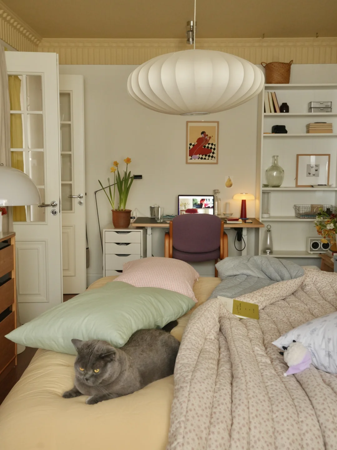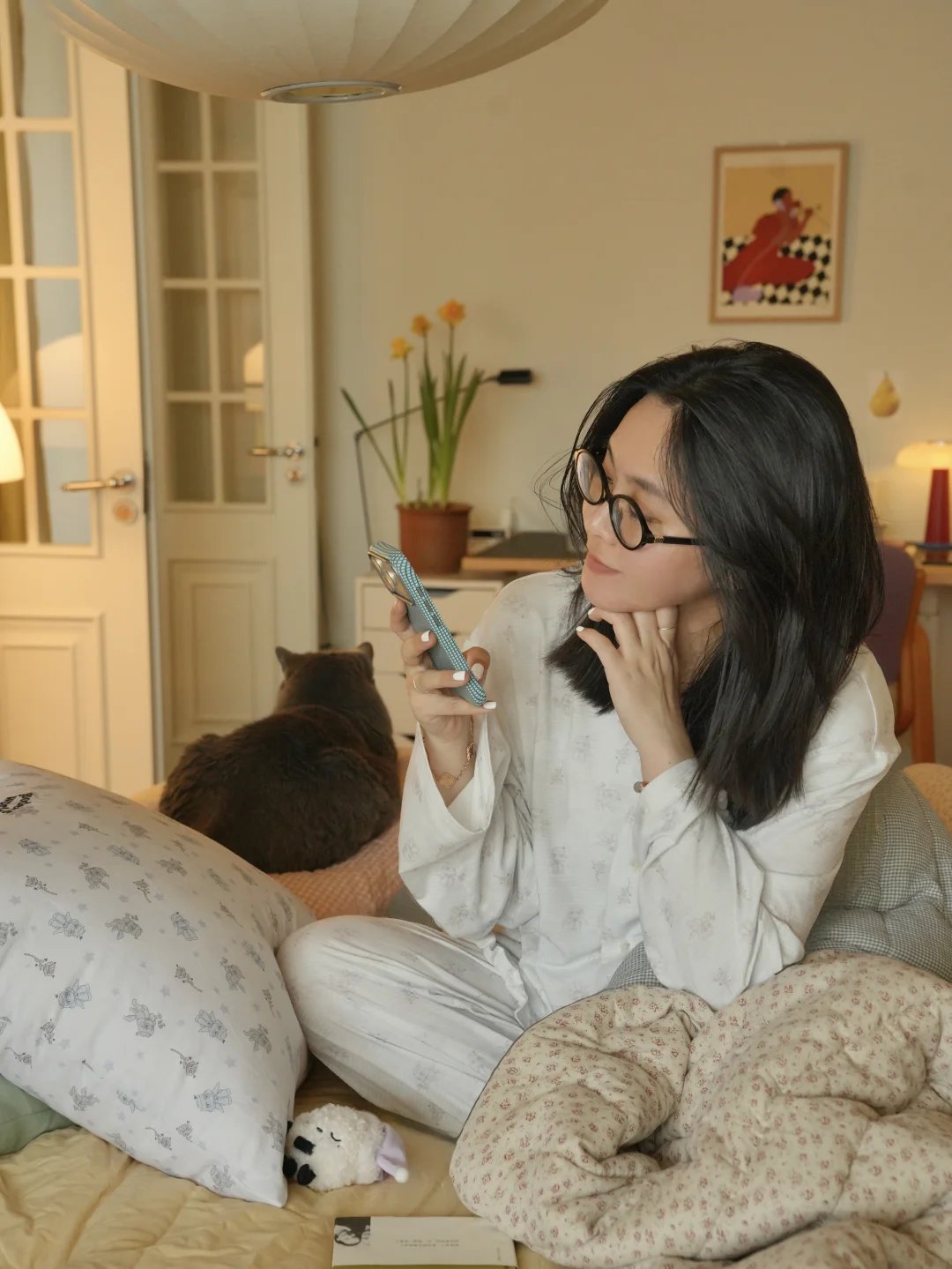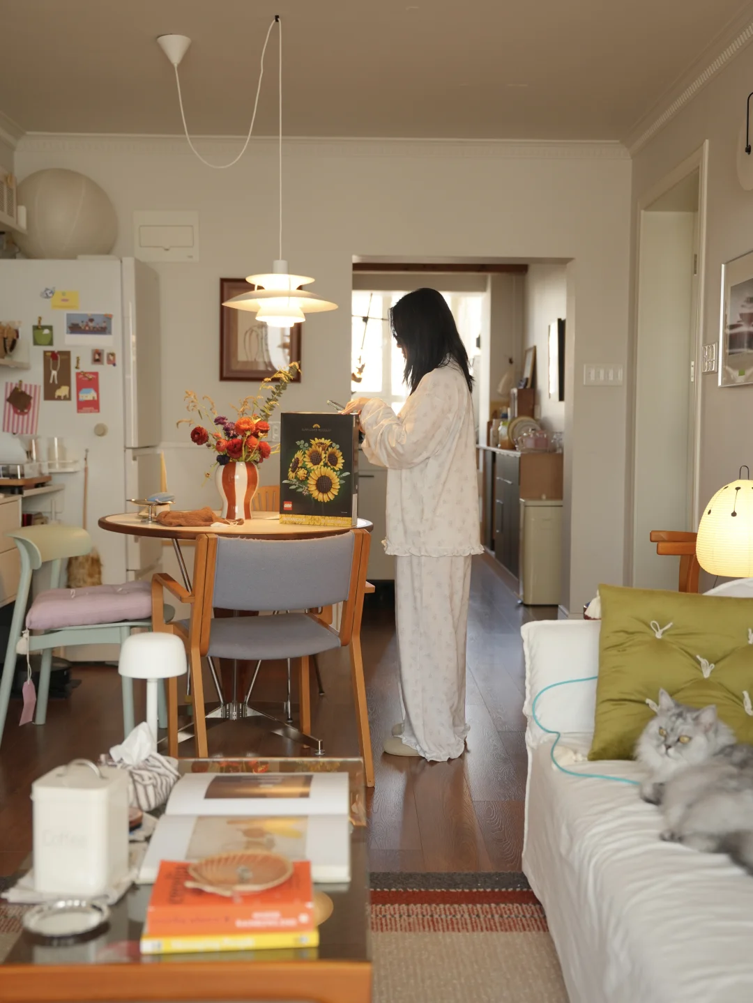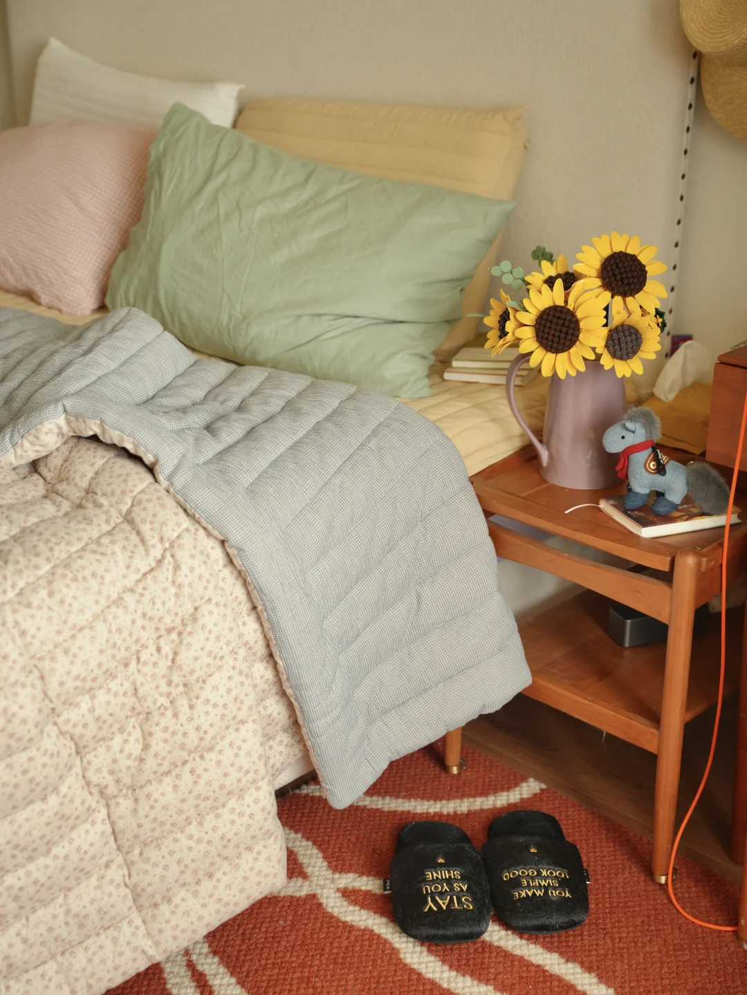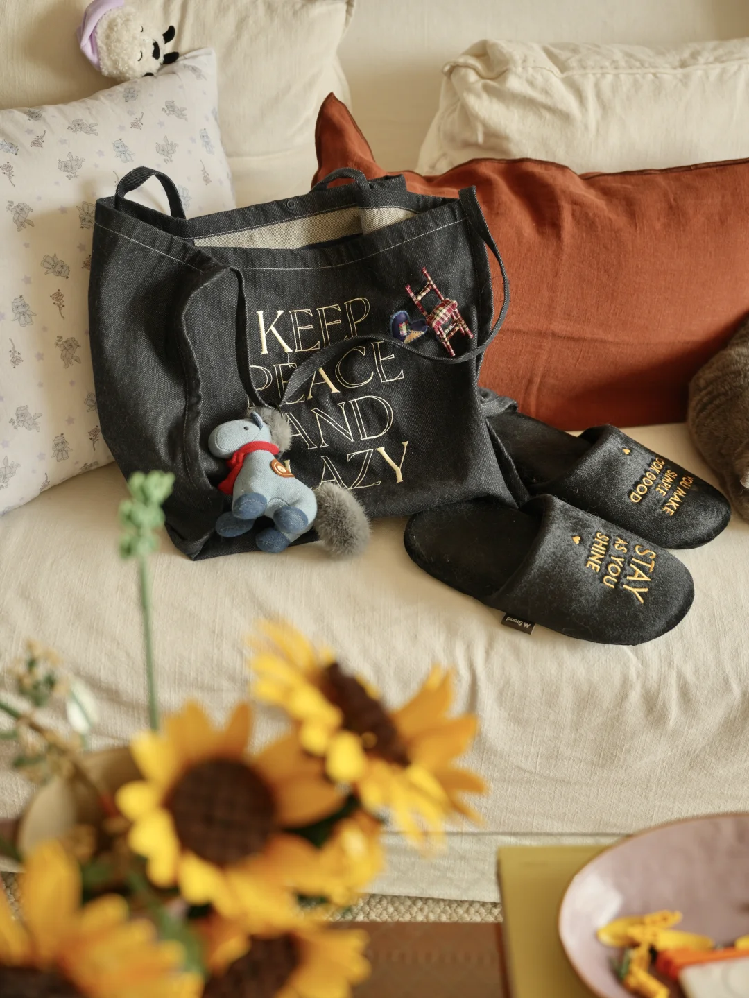 春日的光洒进暖黄房间 抱着抱枕陷进软乎乎的碎花被子 胖胖也在一旁打盹,一整个散漫下来。 最近疯狂入手了春日鲜花, 彩色缤纷带来对春天到来的雀跃 也把阳光拼进向日葵花瓣里。 不必远行,宅家也被春天狠狠包围, 是舒服的日子。 -