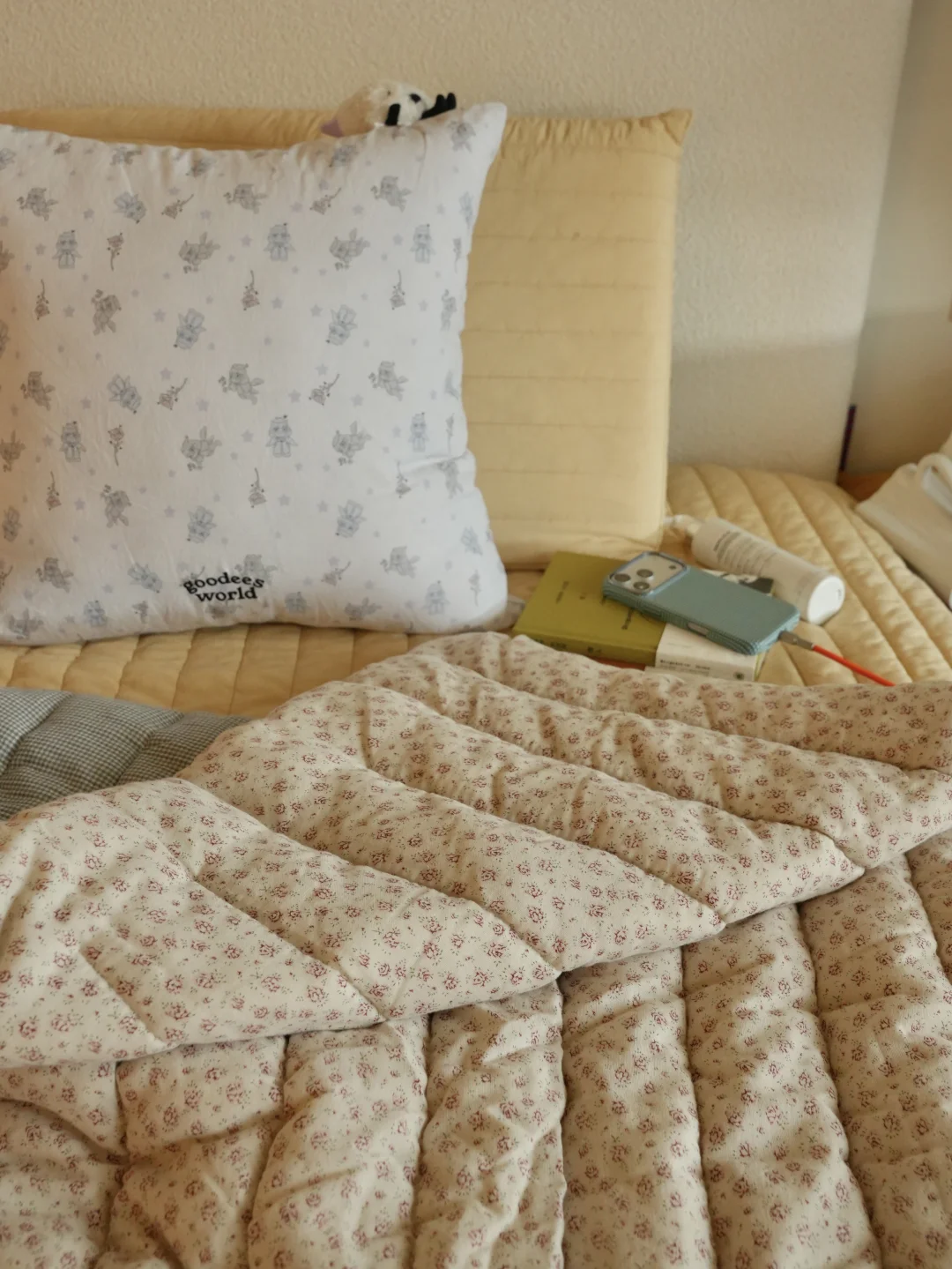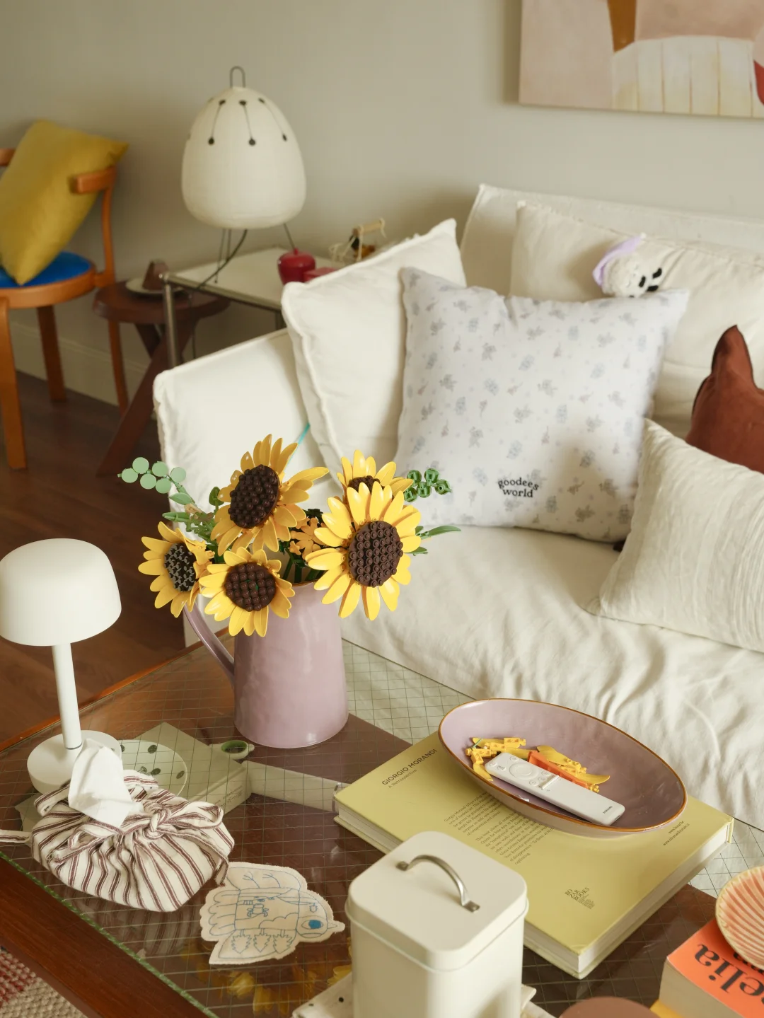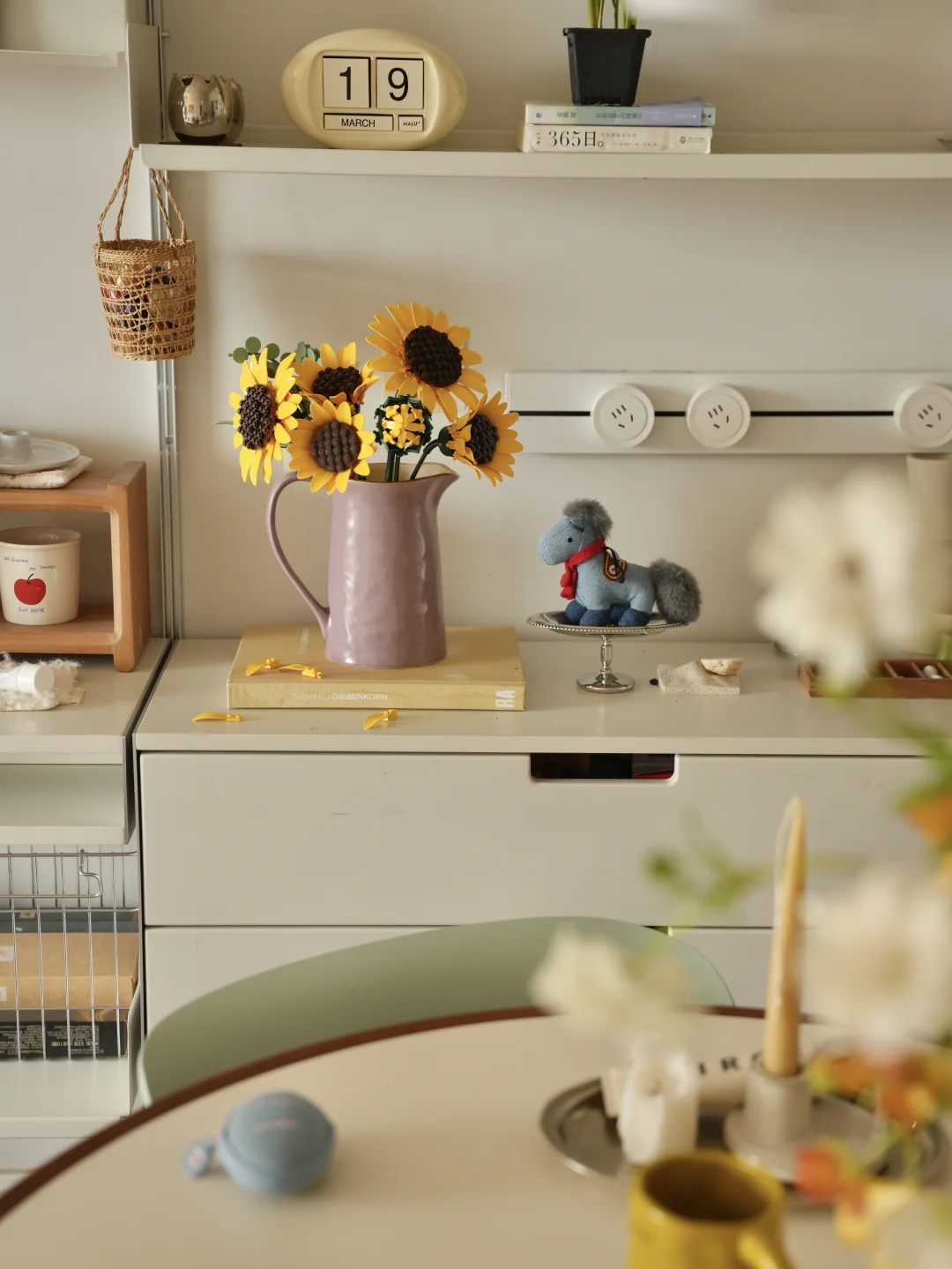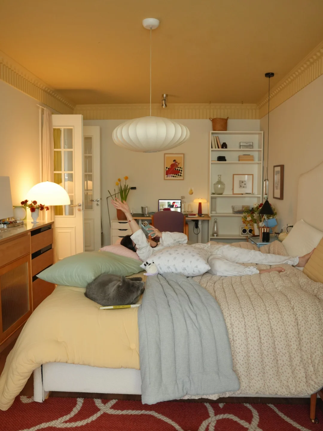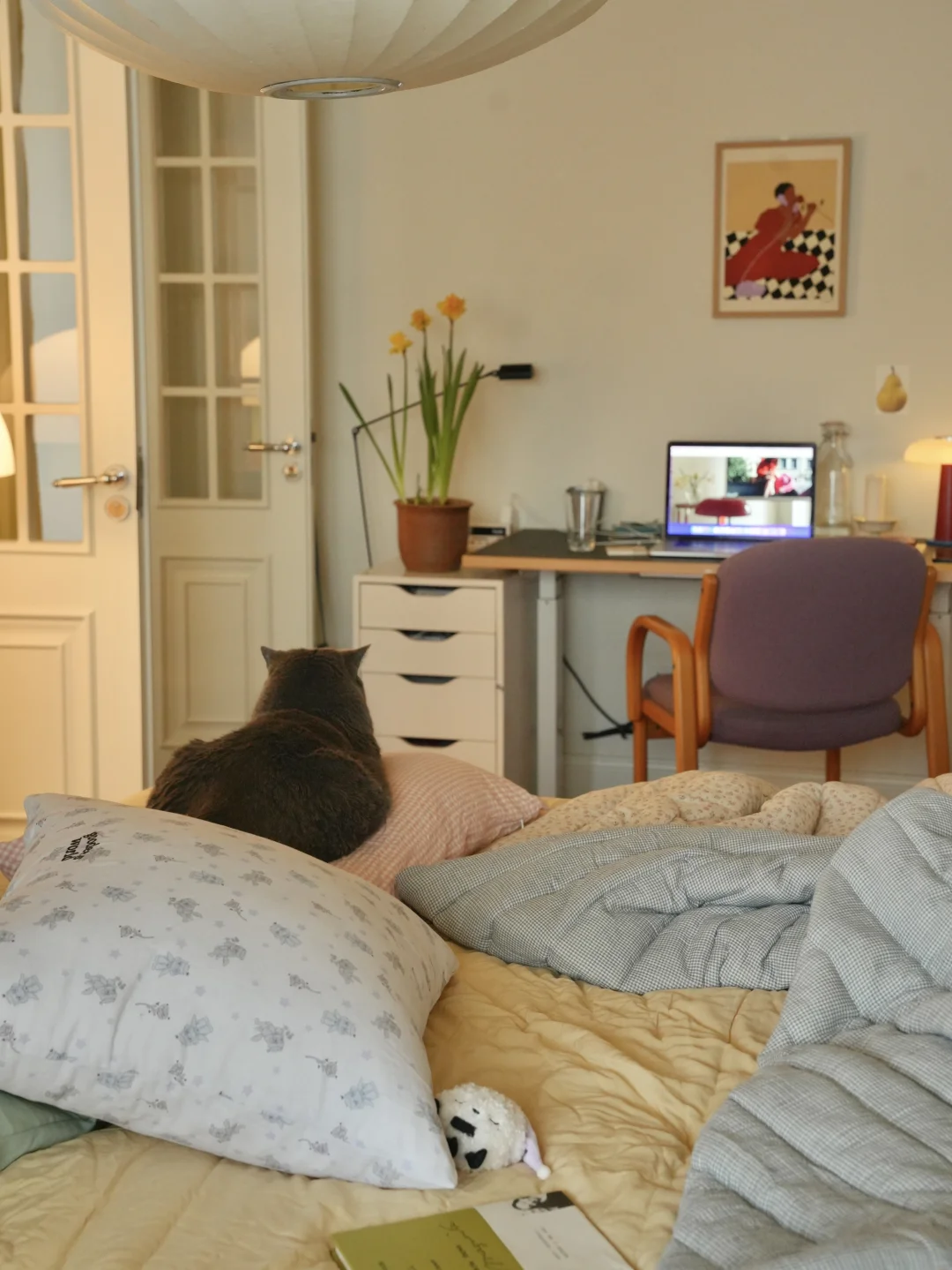 春日的光洒进暖黄房间 抱着抱枕陷进软乎乎的碎花被子 胖胖也在一旁打盹,一整个散漫下来。 最近疯狂入手了春日鲜花, 彩色缤纷带来对春天到来的雀跃 也把阳光拼进向日葵花瓣里。 不必远行,宅家也被春天狠狠包围, 是舒服的日子。 -