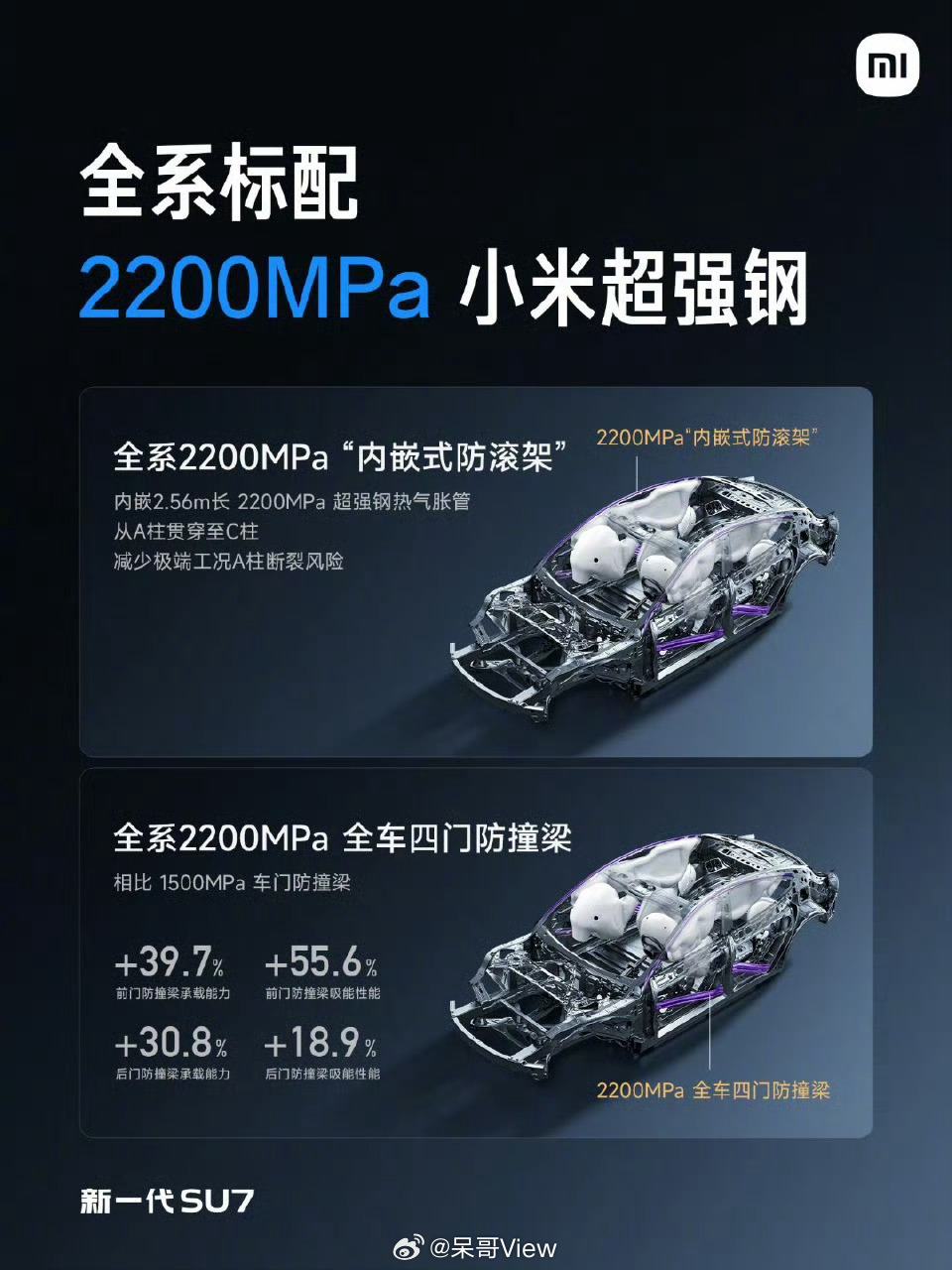 自研的大模型和电机,让车机更聪明、性能更可靠。2200兆帕的超强钢,放在防滚架和防撞梁上,安全感不言而喻。