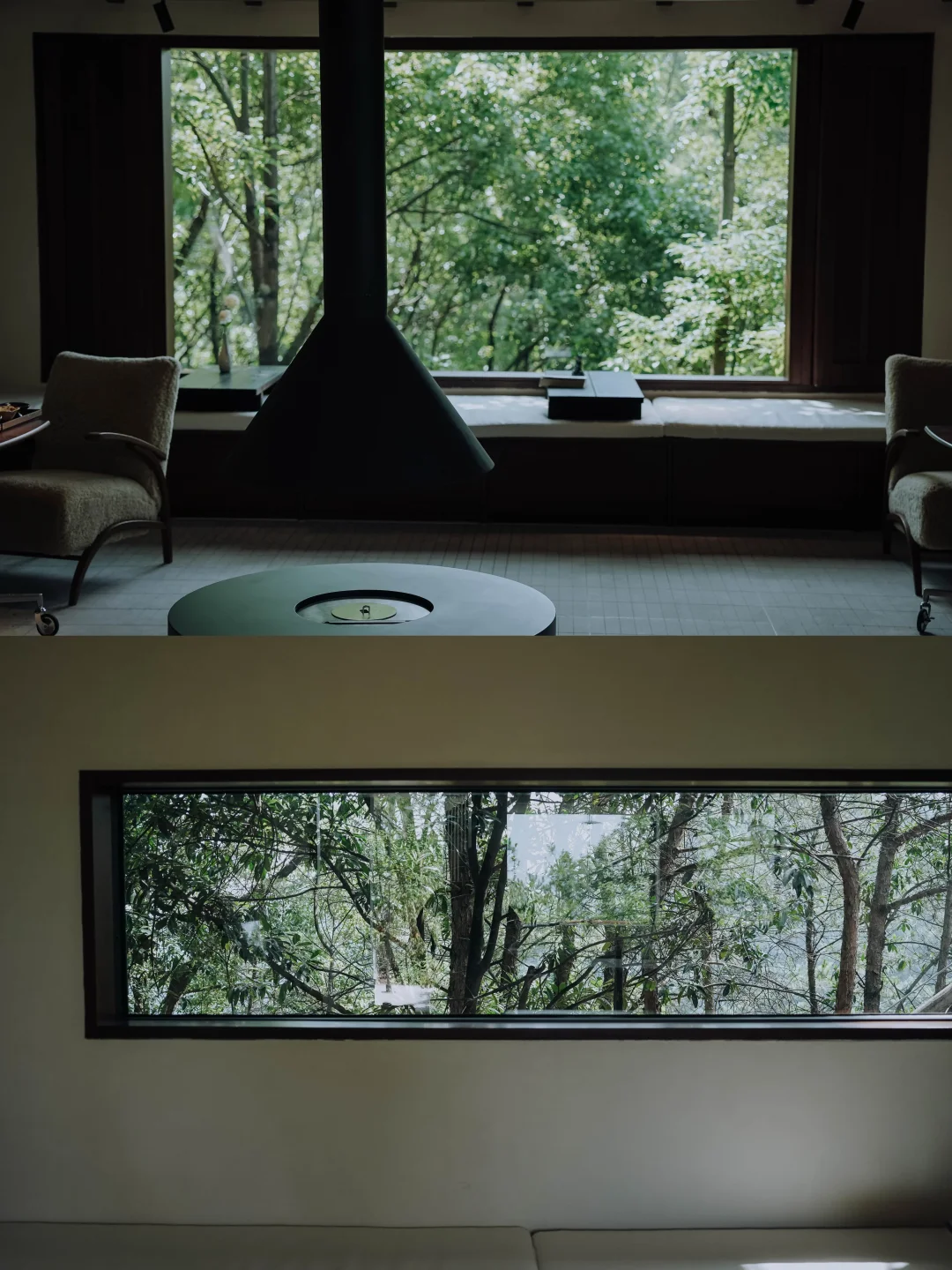 落地窗把山风、松涛、晨雾、夕照全框成画🖼️
