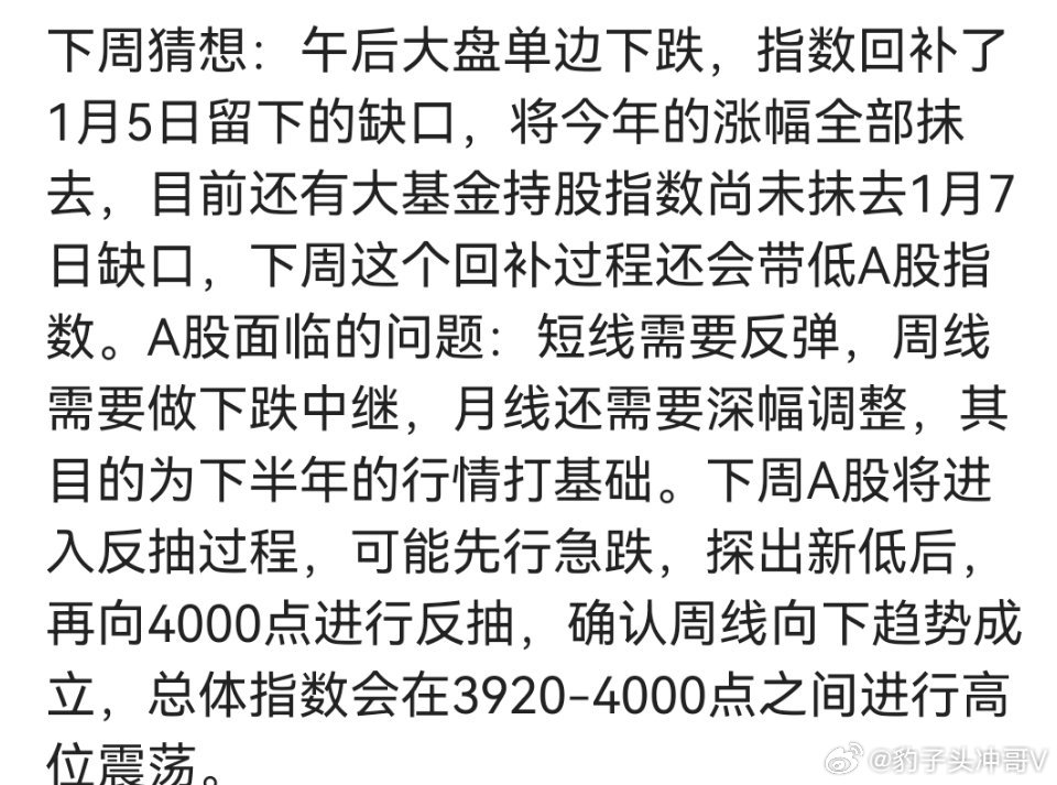 下周A股将进入反抽过程 可能先行急跌 探出新低后 再向4000点进行反抽