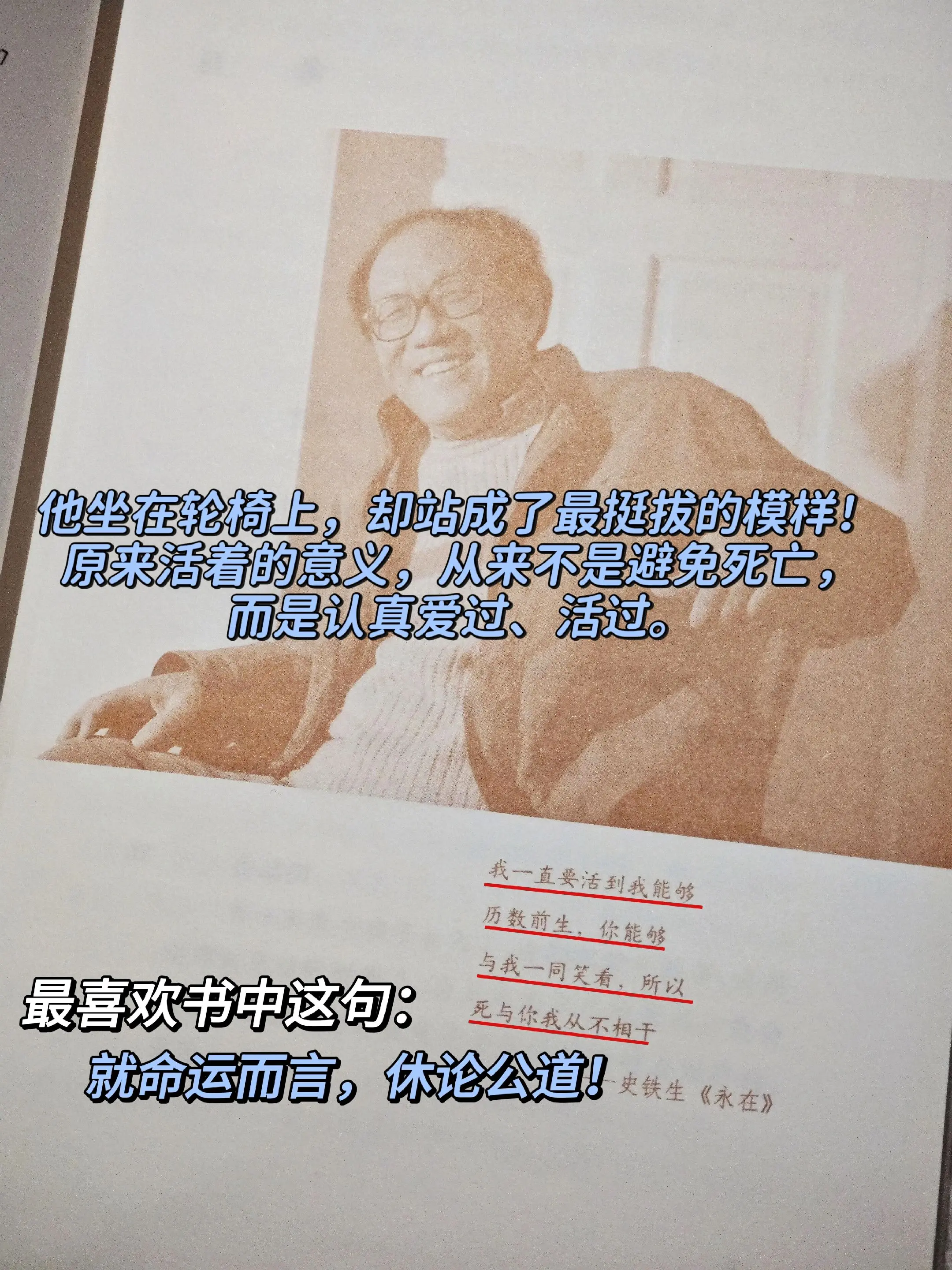 接受自己的普通,然后拼尽全力去活。年轻时总觉得人生无解,崩溃、迷茫、想放弃,以为自己是全世界最惨的人。后来才懂:撑不下去的时候,不是认输,只是累了。《我与地坛》教会我:接受自己的普通,然后拼尽全力去活。致每一个在黑暗里,依然不肯倒下的人