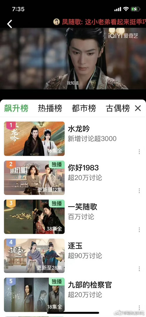 一笑随歌这两天是迎来了剧宣期吗飙升榜第三已超煮鱼!白色橄榄树也上了飙升榜第15!陈哲远又在默默吸粉了