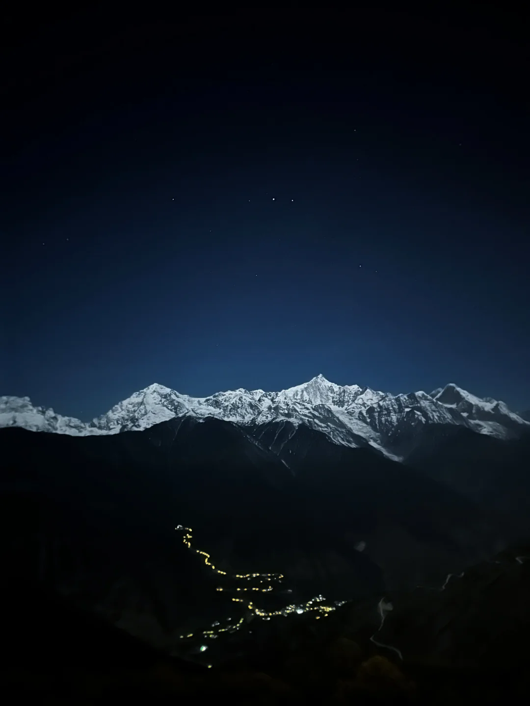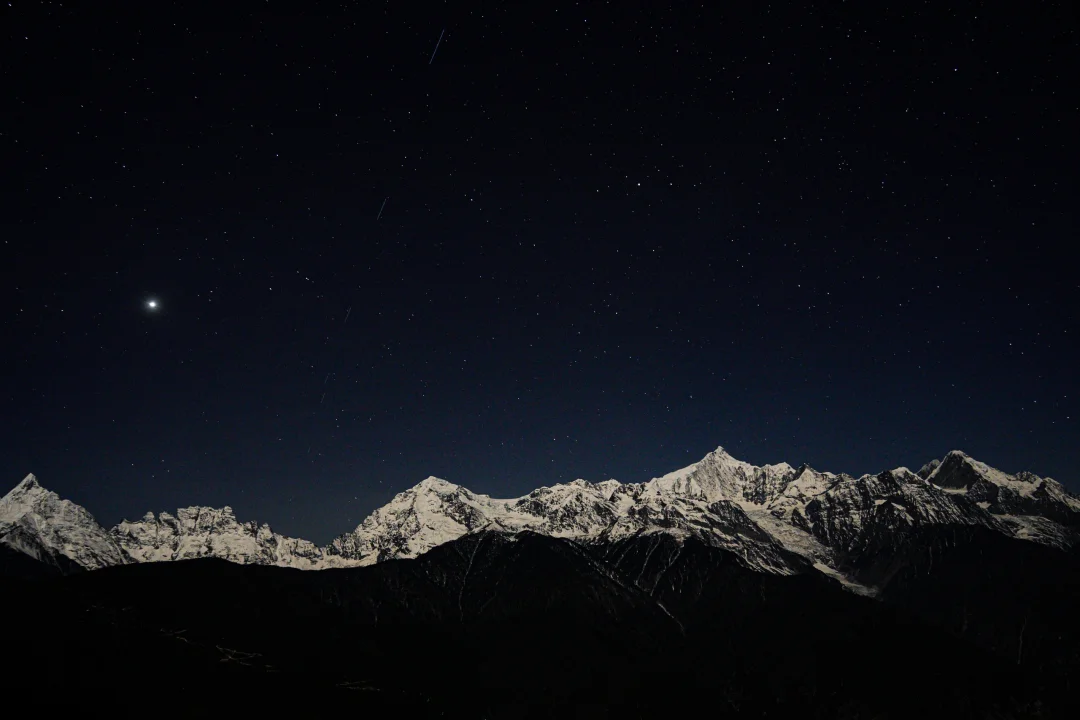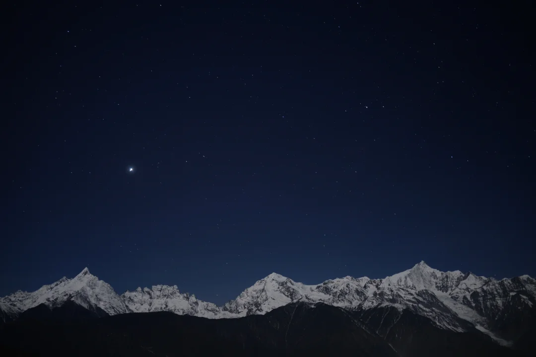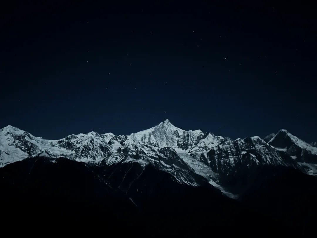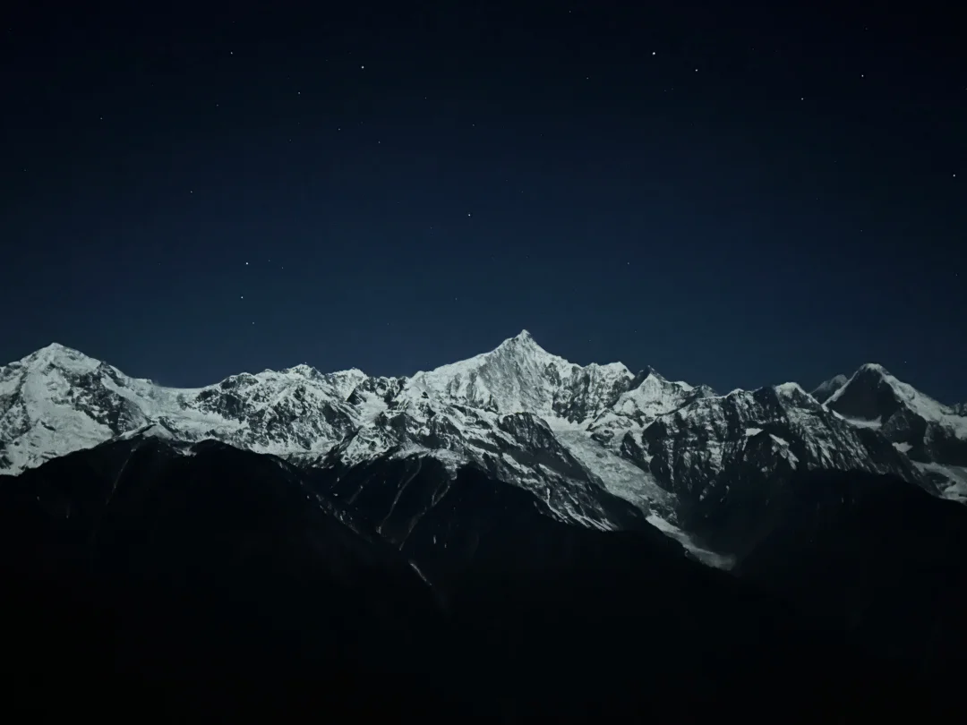 来梅里不要再只看日照金山啦,月照银山也很美。🏔️ 当月光洒满神山,星星挂满天空,有种不真实的美。✨ 下次来一定要再感受下[吧唧R]
