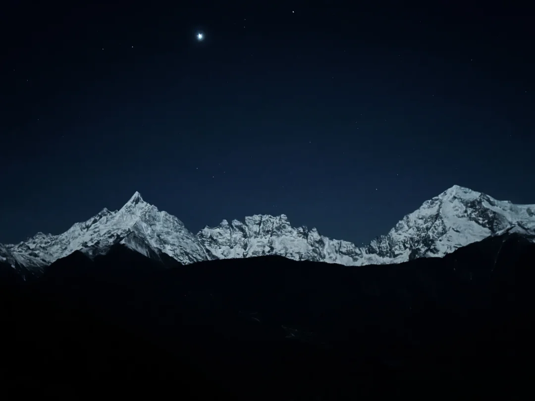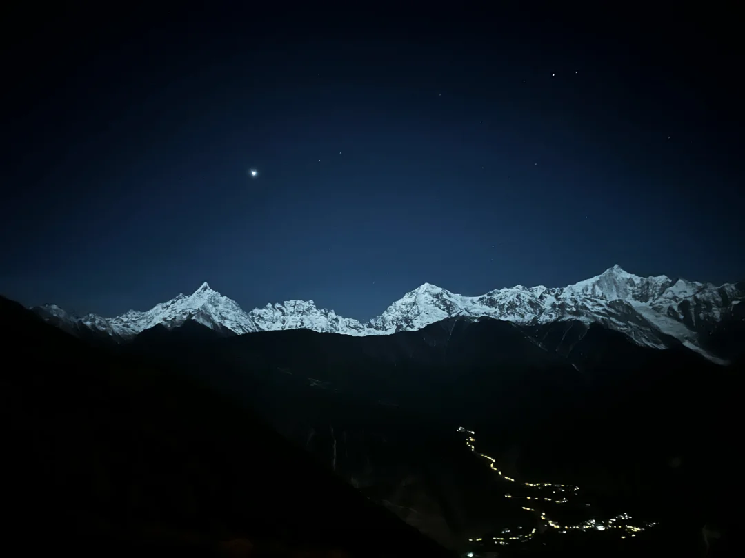 梅里不止有日照金山,还有月照银山,太美啦🌕