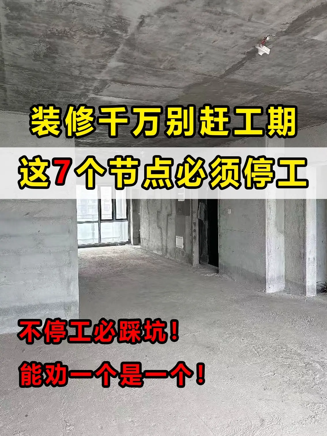 装修千万别赶工期,这7个节点一定要停工!准备装修或者正在装修的朋友们,听我一句劝,这7个节点不停工肯定会踩坑!记不住的收藏起来慢慢看!