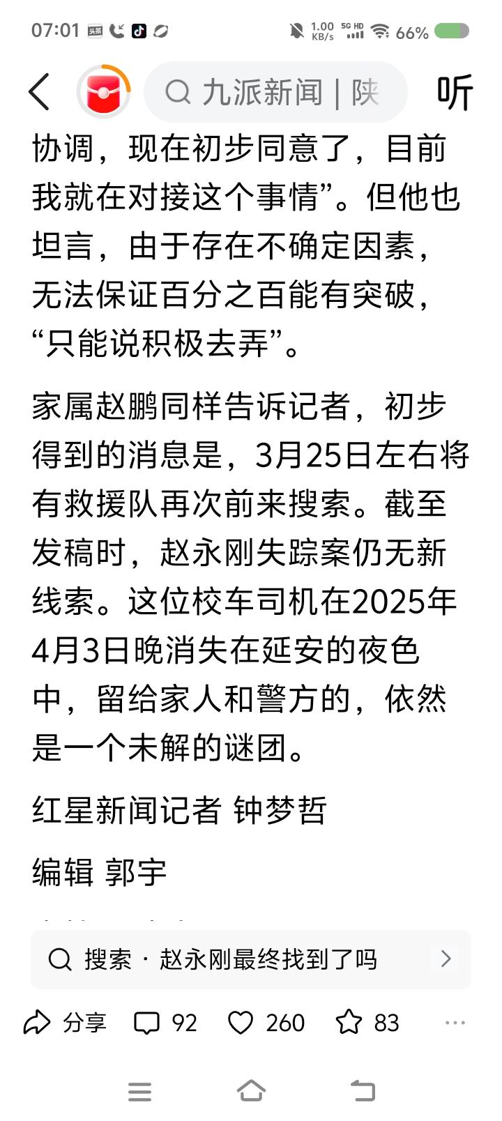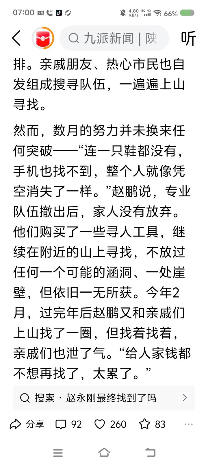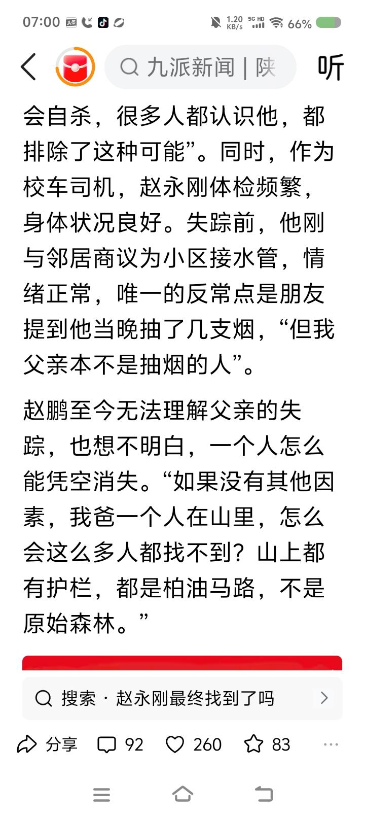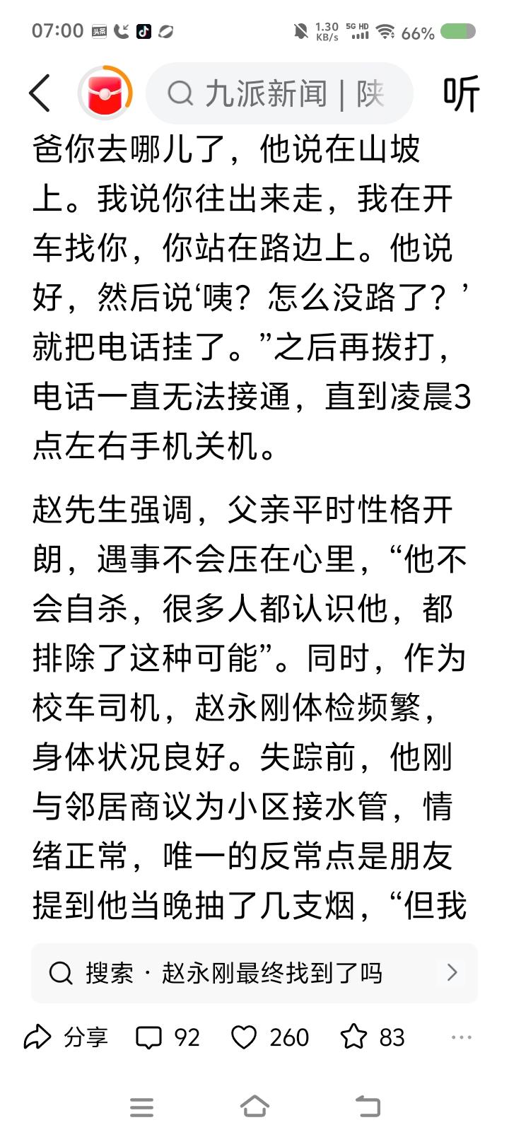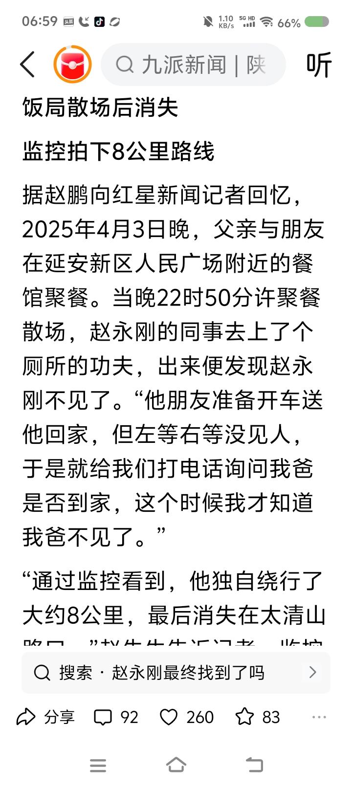 一男子失踪300多天—— 据报道,2025年4月30日晚,一男子与朋友聚餐,22:50左右散场,朋友计划送他回家,很快发现他不见了。从此消失。家人很快寻找。次日凌晨2点左右家人与他打过电话: “你去哪儿了?” “在山坡上。” “你往出来走,我开车接你。” “好。咦,怎么没路了?” 凌晨3点左右,手机关机了。 天亮,家人报警。 监控显示,他步行了大约8公里,步履异常。 聚餐前,家人叮嘱少饮酒。朋友说,聚餐时,男子抽烟了。家人反映他不抽烟。 2025年5且9日,此案被列为刑事案件。多部门、多专业救援队、众亲友多次搜索,未发现任何结果。 预计2026年3月25日左右,再次搜索。 点评: 警方反映,未发现他杀迹象。家属反映,男子性格乐观,身体状况良好。 到底发生了什么? 聚会几个人?说了些什么?朋友几点发现男子不见的?几点打电话给家属的?家人几点找的?什么时候报警的?这段时间很关键。结合监控,核实笔录。 如果男子山上走失,搜寻难度大了。家人说,山上有柏油路,不是原始森林,怎么会找不到?搜索队伍搜了几座山,未果。晚上,山上路况不好辨明,行人易发生危险。