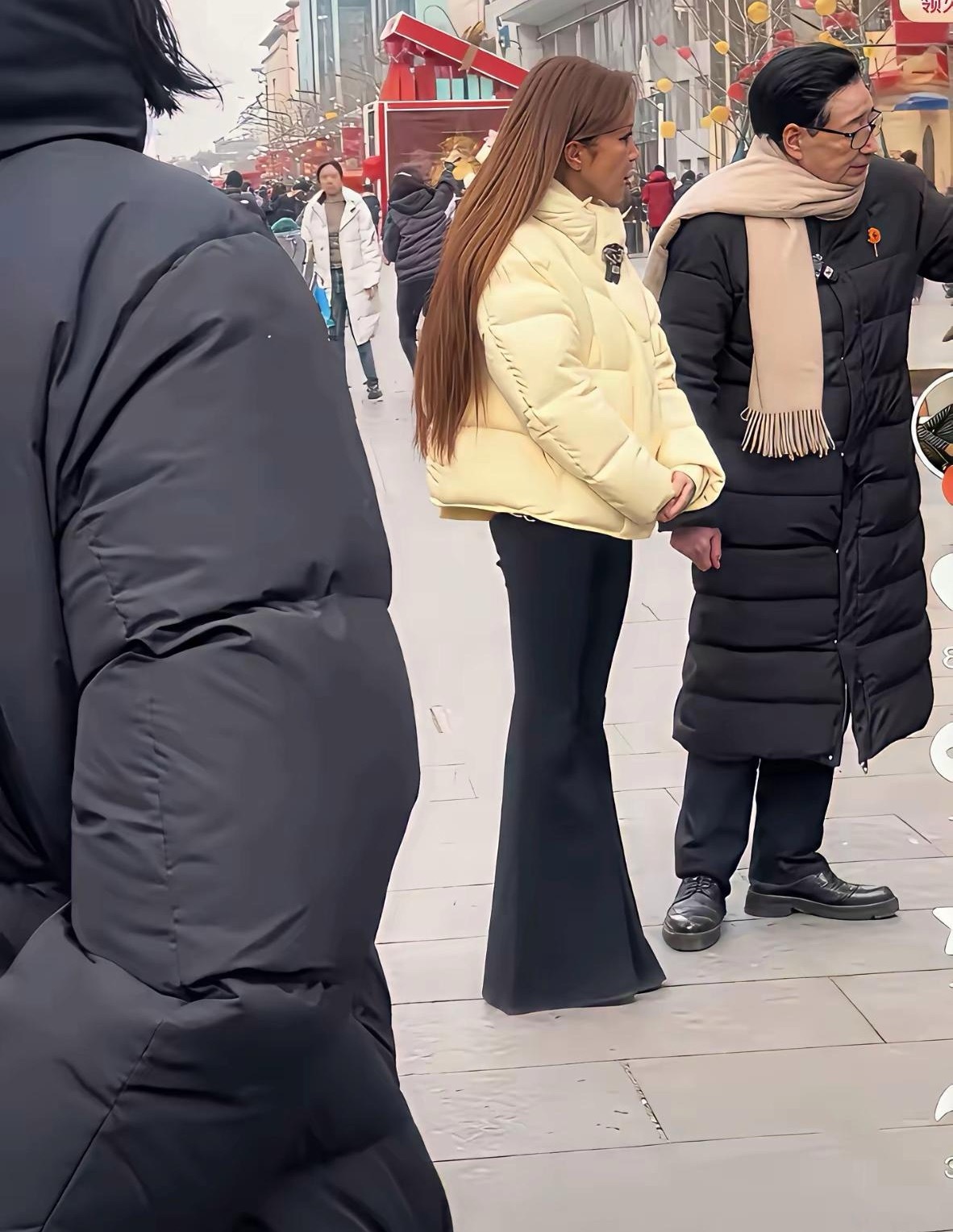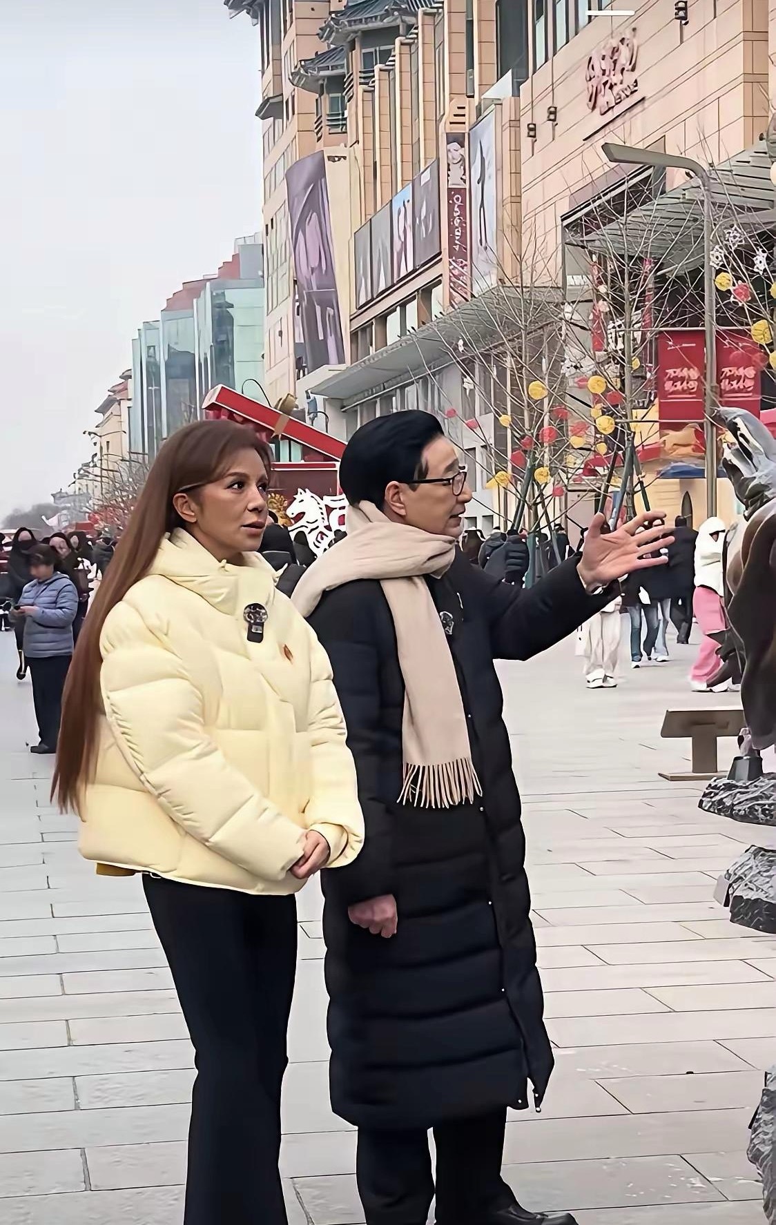 哈哈哈真是衣服乱穿的季节一个穿羽绒服一个穿短裤