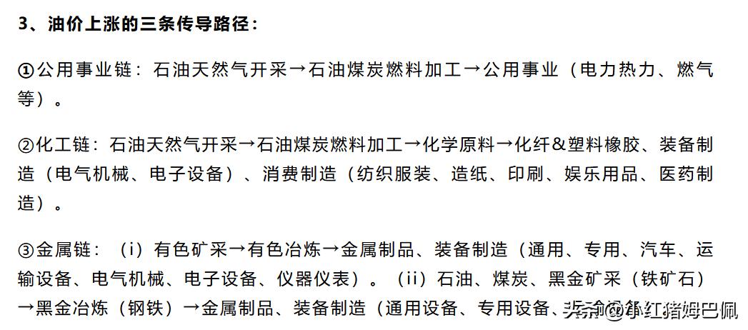 华创证券策略团队近期发布了一份关于油价上涨后产业链上哪些行业受益,哪些行业承压的研究报告。我挑了其中的的一部分内容,摘录分享给大家。 一是核心结论,阐述了油价上涨10%背景下,对一些主要行业的利润影响,但要注意,这里的油价上涨幅度指的是长期维度,而不是指当前冲突烈度较高时冲到的高点。大家可以大概结合一下自己的持仓,判断一下对所持有公司的影响大不大。另一部分给大家借此科普一下现实经济中部分产业链上下游的成本与价格传导机制。