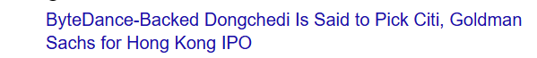 彭博报道,字节跳动旗下内地汽车信息及交易平台「懂车帝」正在准备赴香港上市,计划募资10亿至15亿美元,传已选定花旗、高盛负责IPO事宜,后续或将扩大承销团队。惟目前上市计划仍处初步阶段,募资规模及时间表仍有变数。