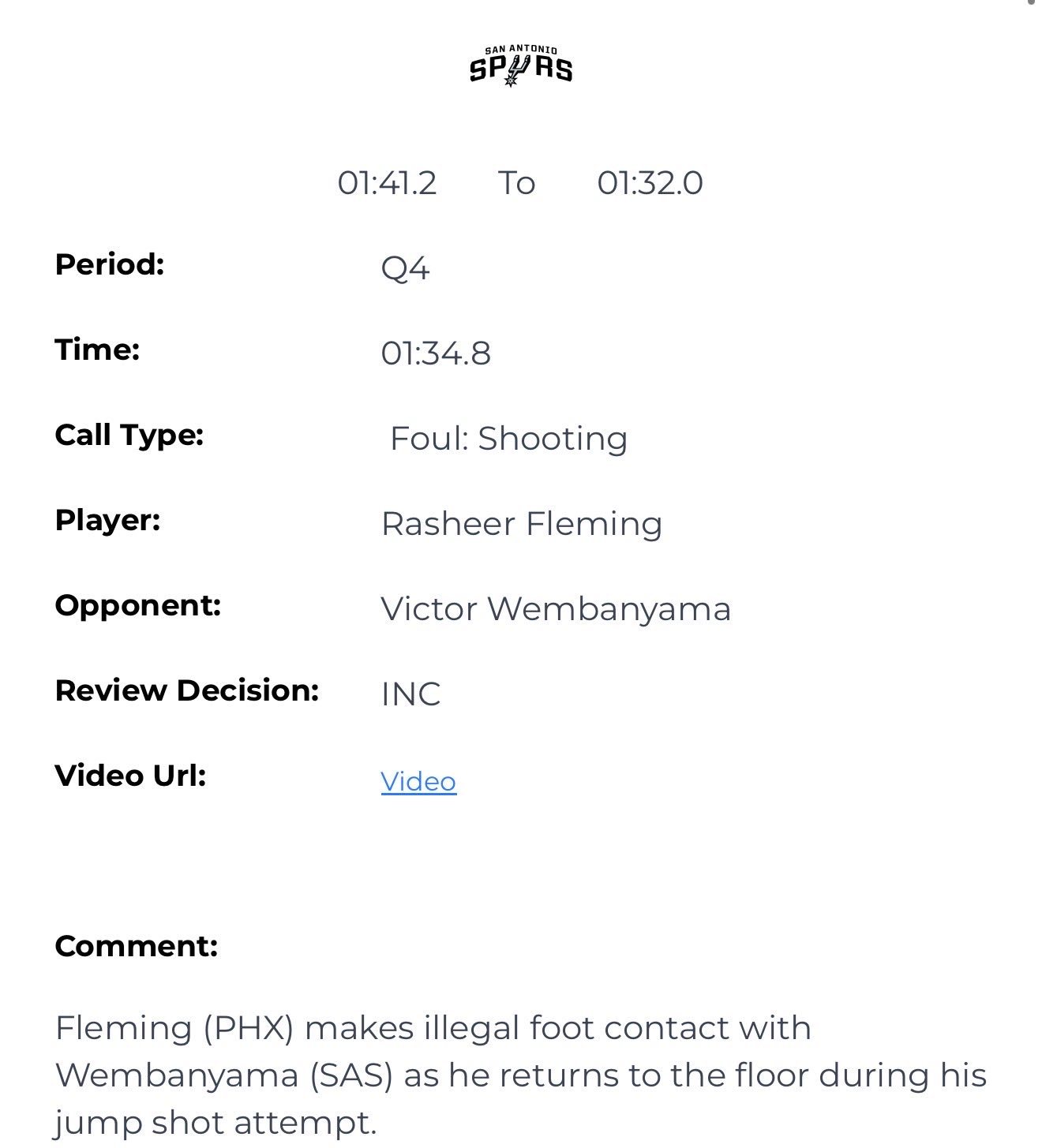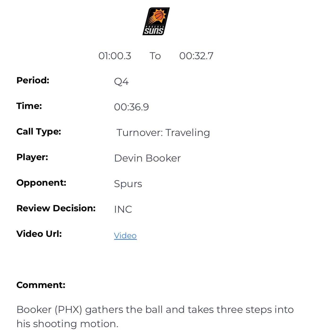 NBA最后两分钟裁判报告显示,昨晚有3次误判让太阳队受益。1分34秒:漏判弗莱明