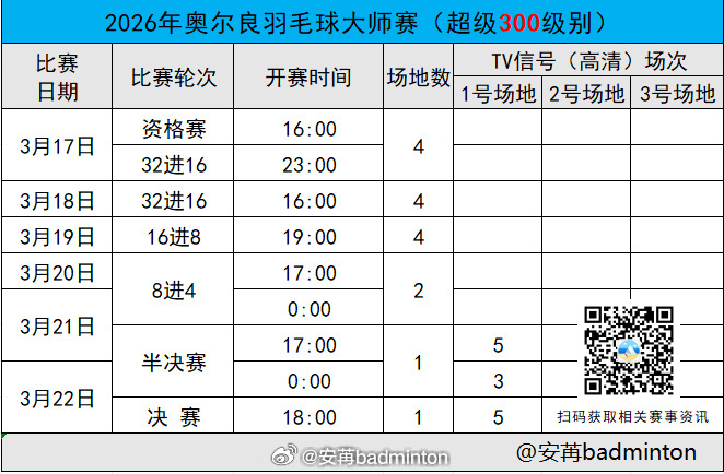 2026年奥尔良羽毛球大师赛【半决赛】赛程(图1)【8进4】完整赛果(图2)|开赛时间(图3)