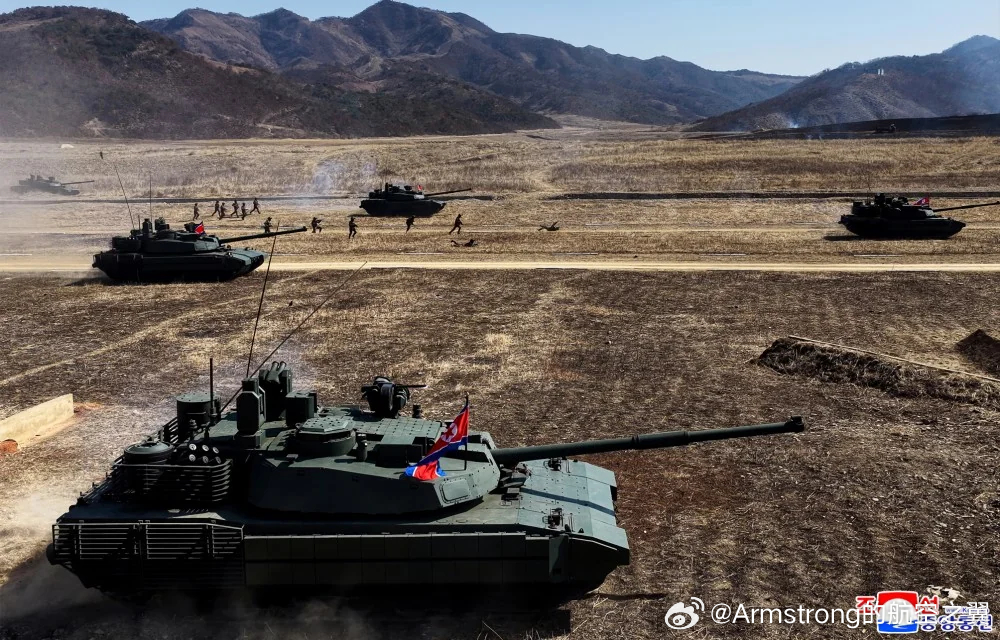 和99A水平差不多了?演练中的朝鲜“天马-20”等新坦克,配备了车载遥控武器站和