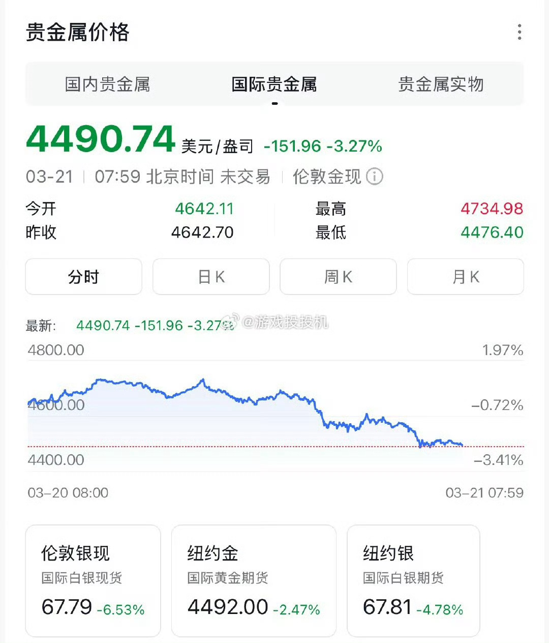 金饰价格再次大幅下跌黄金暴跌,大家坐稳扶好了黄金这几天,天天跌,从月初1208左右,一直下到今天目前1015。这个时候有很多人心里扛不住了,想割肉,如果你这么想就是大错特错了,你不到割肉在最低点,你还有可能在高点接回来,最后里外都是亏!现在需要做的就是稳定心态,以静制动,拿着不动就是最好得选择