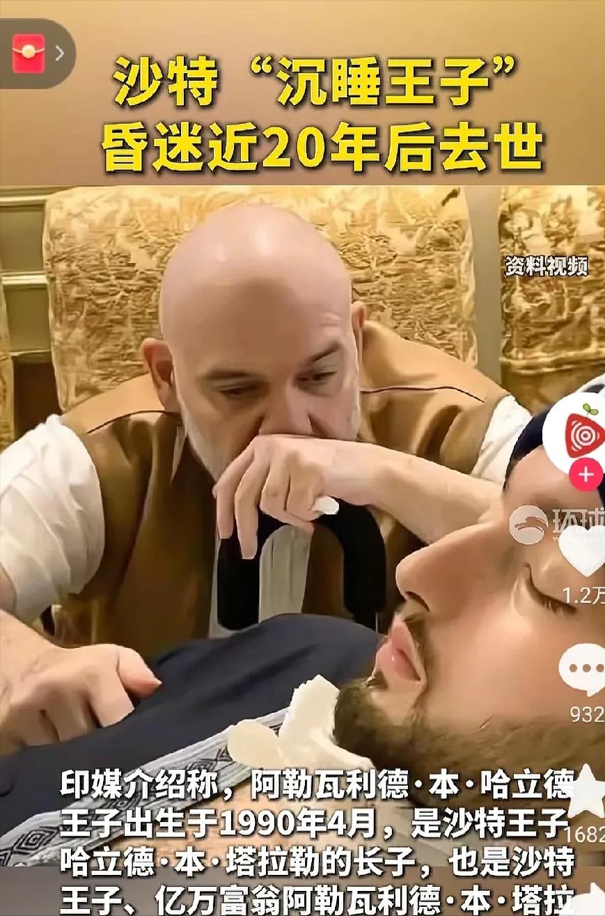 看来钱也不是万能的!沙特“沉睡”王子因车祸昏迷近20年。当年出车祸后,其父亲不肯接受儿子即将死亡的事实,于是决定花钱为其续命,希望等到奇迹出现!这20年间出现的奇迹就是王子的手指头偶尔会动弹几下,其他没有任何反应! 2025年7月某天清晨,沙特一间顶级病房的监护仪发出了一声漫长的哀鸣。 持续了近20年的生命维持系统,终于按下了暂停键。那个被称作 “睡王子” 的阿勒瓦利德,终究没能熬过漫长的沉睡,在 35 岁这年,走完了他的一生。 没人能否认,这对所有人而言,都是一场跨越二十载的漫长告别。 故事得从20年前说起。阿勒瓦利德15岁那年,在英国留学,正是少年意气风发的年纪。 一场突如其来的车祸,把他原本光明的人生,撞得支离破碎。 头部重创,紧急送医,命是捡回来了,但眼睛再没睁开过。 医生把话撂得很清楚:脑子已经坏透了,不可逆。苏醒的概率?几乎为零。即便命运网开一面让他活着,意识也早已被永久封存,再也无法苏醒。 这话一传回沙特,他父亲哈立德王子当场就气得掀翻了桌子。 要说这位老爹,沙特王室出身,含着金汤匙长大,钱能搞定的事儿在他这儿压根不算事儿。 可面对儿子躺在床上像活死人,他没法接受“失去”这俩字。他当场撂下狠话:不管花多大代价,不管等多久,都得给儿子续命! 从这天起,一场烧钱的生命维持战打响了。 哈立德在全球范围内搜刮顶尖医护,组了一支专门伺候儿子的团队。病房里塞满了世界最先进的设备,呼吸机、监护仪全天不停转,就为了盯着阿勒瓦利德那口气。 护理人员三班倒,定时翻身、按摩,特制营养液一滴一滴往里灌。所有细节都做到了极致精细,所有人的心愿,都只是想让他再多撑几天。 维持一条生命的代价到底有多高?就算他是王子,每个月 27 万美元的津贴,在每年天文数字般的医疗费面前,也根本不值一提。 据估算,一年下来少说也得100万美元,20年累计超过2000万美元。这笔开销,普通家庭想都不敢想。 可哈立德从来没动摇过。 新治疗方案一出来就试,身边人劝他放弃,他就当耳旁风。一年又一年,黑头发熬成了白头发,他天天守在儿子跟前,给他唠嗑,播他以前爱听的音乐。明知道儿子可能压根听不见,也从来没断过。 2020年前后,奇迹似乎来了。正在悉心护理的工作人员,突然察觉到阿勒瓦利德的手指头轻轻动了一下,瞬间屏住了呼吸。哈立德激动得差点蹦起来,觉得这么多年没白等,奇迹要来了。 可现实很快泼了盆冷水。 大伙儿发现,除了手指头偶尔无意识地动两下,别的啥反应都没有。双眼始终紧闭,毫无意识,没有任何知觉,不会开口,不会动弹,只能依靠仪器维持生命。 这哪是什么苏醒的兆头?就是神经反射,跟真正的醒过来差着十万八千里。 但这一点点波动,却给了哈立德无限希望。 他觉得只要儿子还喘气儿,就还有盼头。于是继续砸钱,继续等待,继续守着这具没有灵魂的躯壳。 直到2025年7月,监护仪上那条线彻底变成了直线。 阿勒瓦利德走了。 这场持续快20年的天价续命,最后还是以遗憾收场。哈立德用花不完的钱,延长了儿子的命,但始终没能换回他的意识,没能圆儿子苏醒的梦。 这场坚守让人唏嘘。 我们常说有啥别有病,没啥别没钱。 可你看,金山银山堆在那儿,请来全世界最牛的医生,用上最顶级的设备,到头来还是唤不回那丢了的精神头。 钱能让身体多喘口气,但叫不醒睡死过去的魂儿。 能让肉体维持运转,但留不住活蹦乱跳的日子。 也许哈立德的坚守有他的道理,那是爹对儿子的爱,是王室的脸面,是他向世界证明“不会丢下自己人”的姿态。 但对于睡着的阿勒瓦利德来说,这20年到底意味着什么?他没法说,没法反抗,只能在被动的状态里,稀里糊涂地度过了近四分之一的生命。 这件事也给我们所有人提了个醒:这世上最珍贵的东西,真不是用钱就能买来的。 健康、清醒、活着,这些才是真正值钱的。 一旦不在了,花多少钱、多少金子,都挽回不了。 所以啊,珍惜现在的身体,守好身边的亲人,过好清醒的每一天,比攒多少钱都强。 钱这东西,生不带来死不带去,只有健康和真心,才是这辈子最值钱的家当。 信源:沙特沉睡王子昏迷近20年后去世 长期昏迷终告别人世光明网 2025-07-21 07:52:05