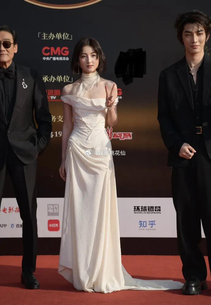 张子枫穿着白色的抹胸长裙,展现出了飘逸之美,还非常的有清新时尚感,她画着精致的妆容,看起来像个活泼的精灵。