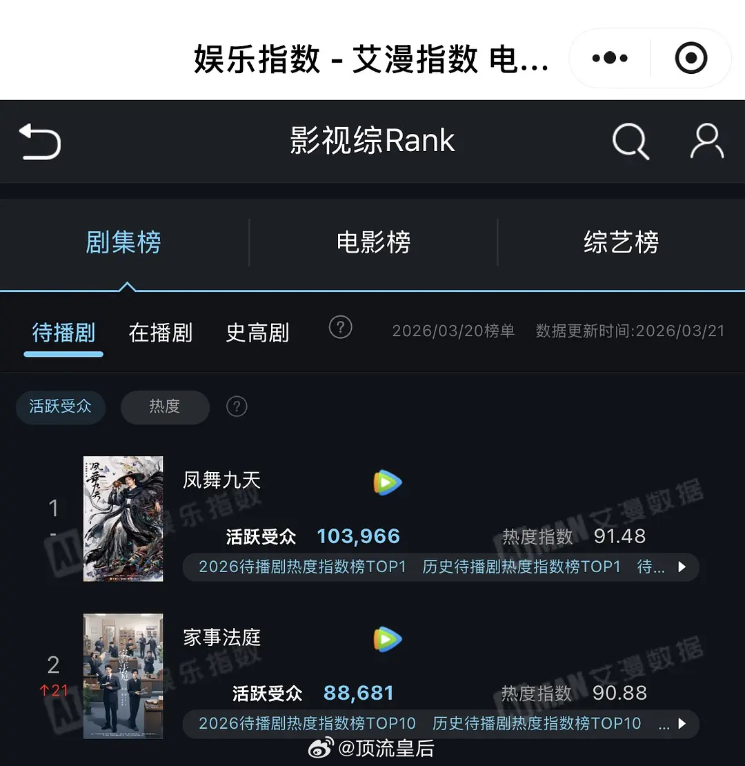 龚俊待播剧凤舞九天、家事法庭达到活跃观众人数历史新高