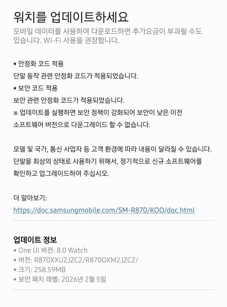 韩版 Watch4 竟然还能收到固件更新,老咕噜棒子了