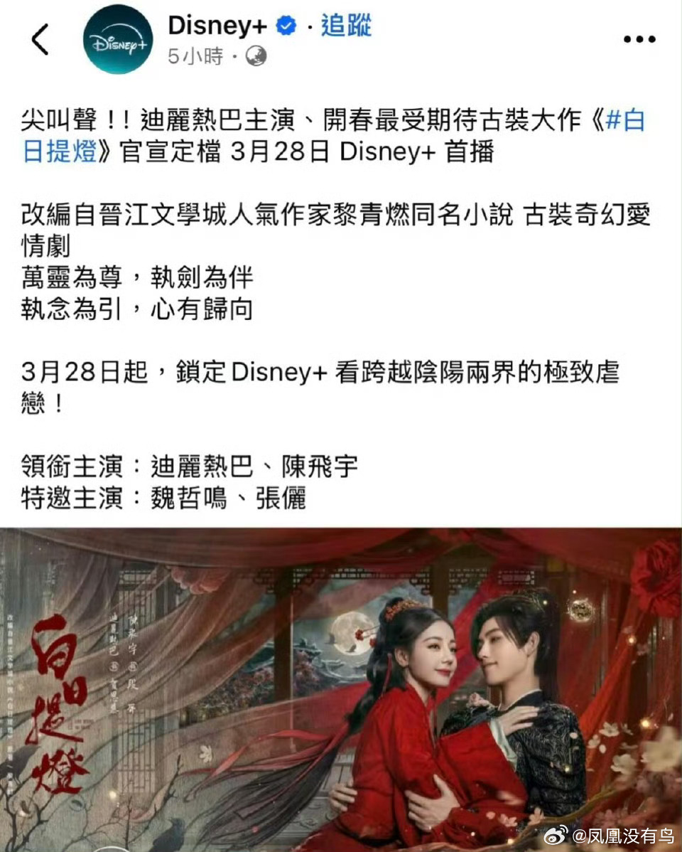 迪丽热巴《白日提灯》Disney迪士尼平台3月28日同步播出, 韩国中华TV也拿