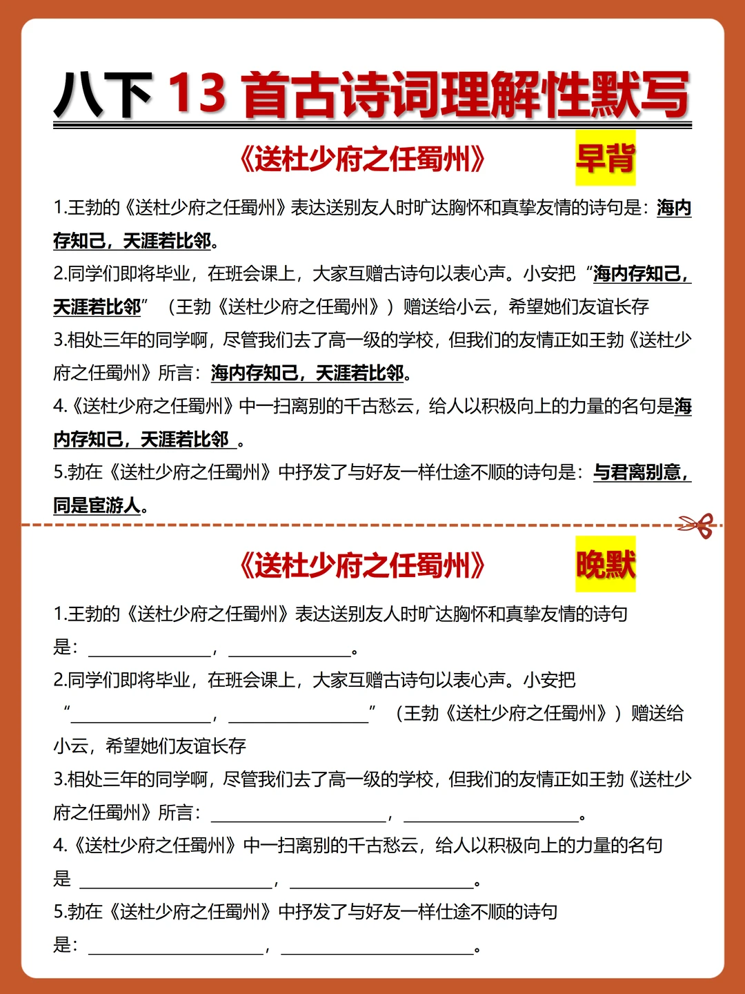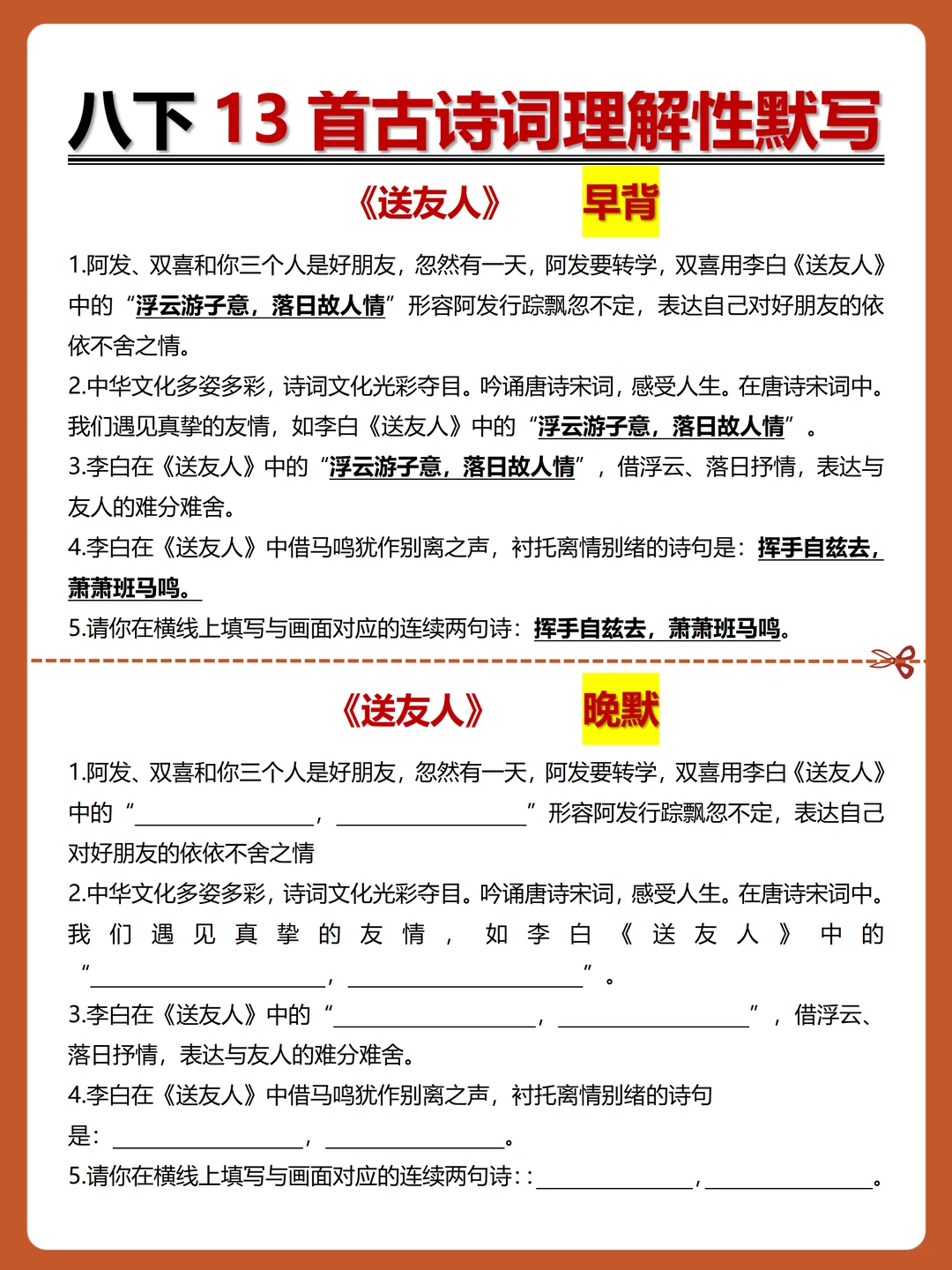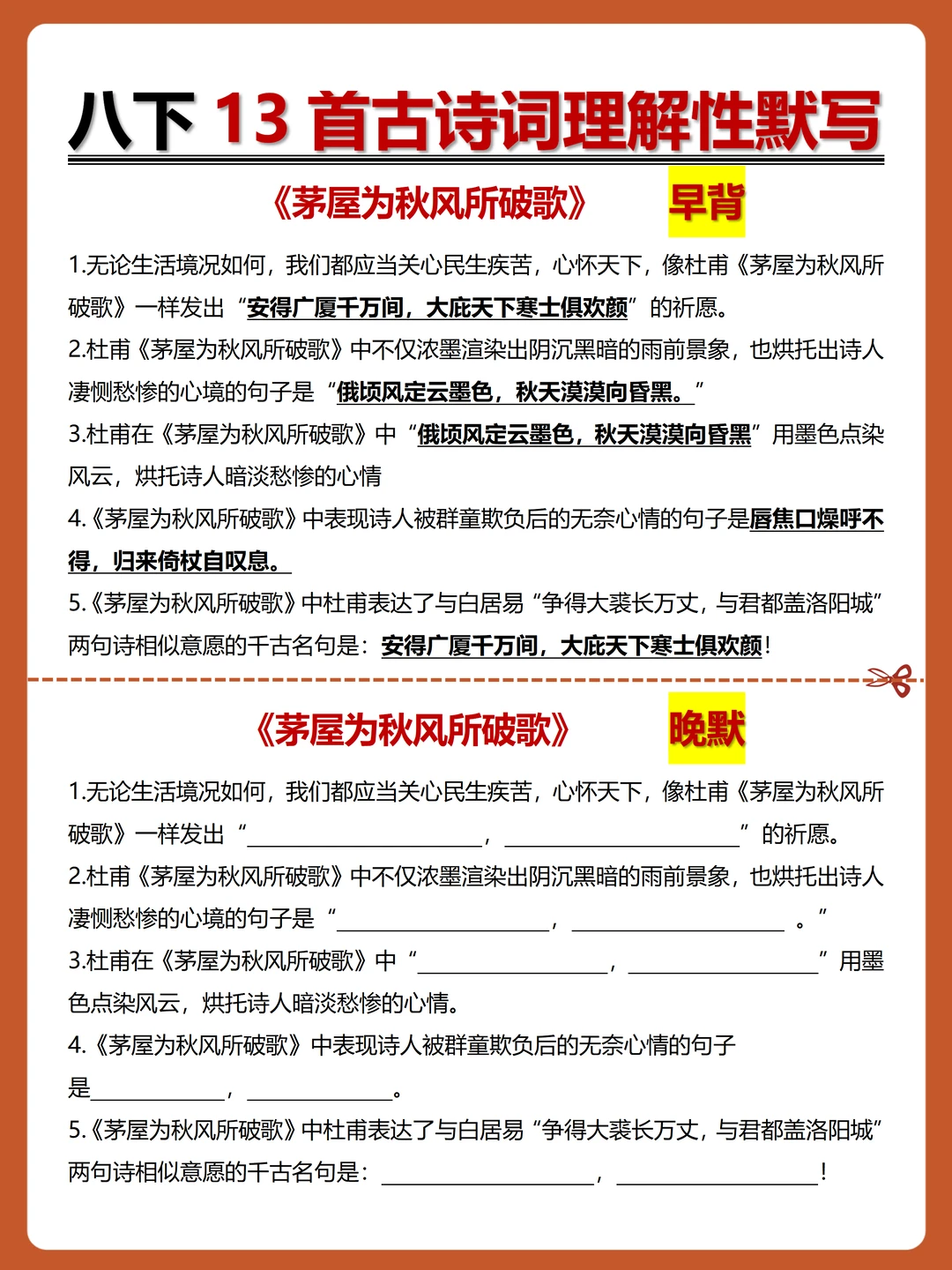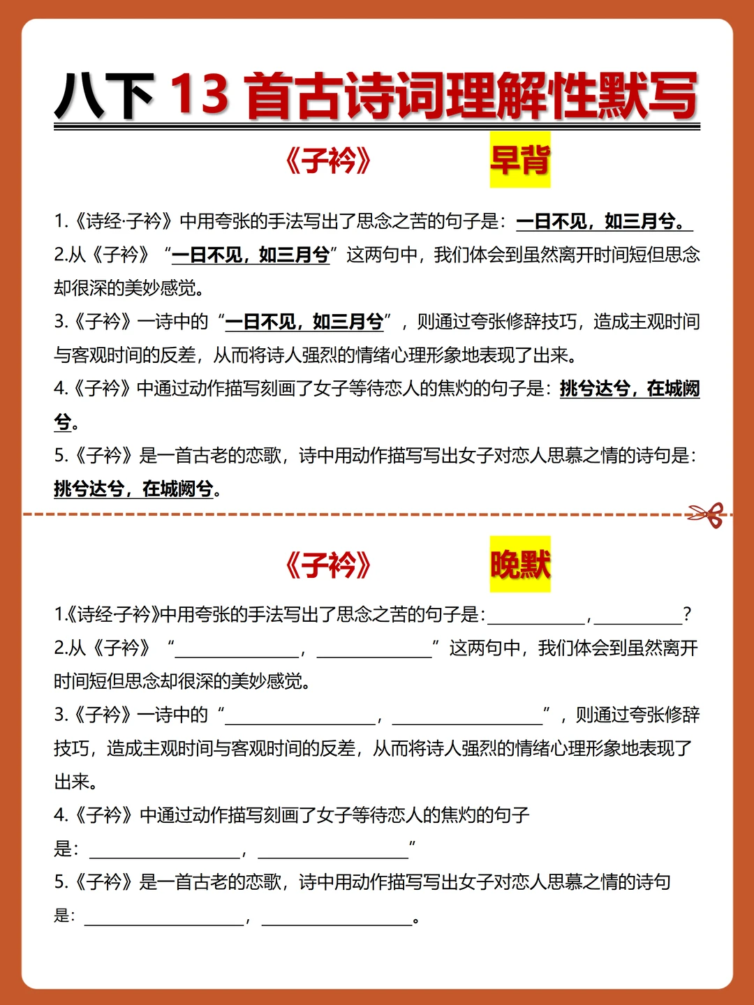 [火R]被问爆的八下古诗词理解性默写-早背晚默小纸条来了,每日10分钟,13天就能搞定古诗词默写!