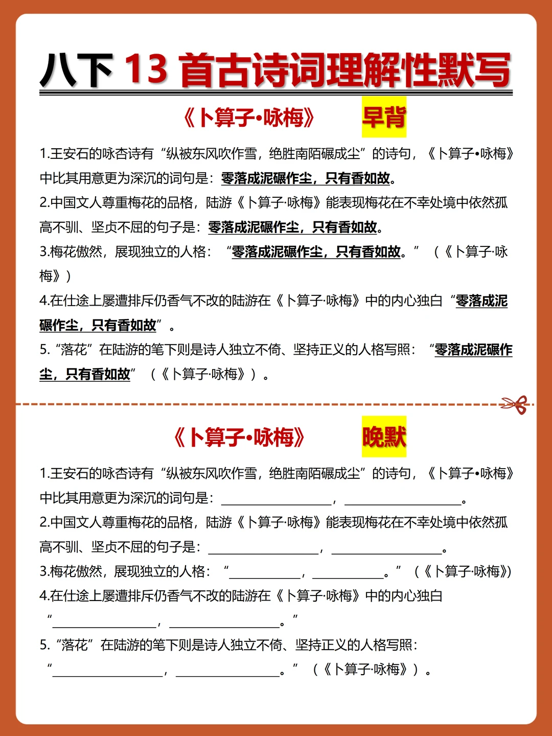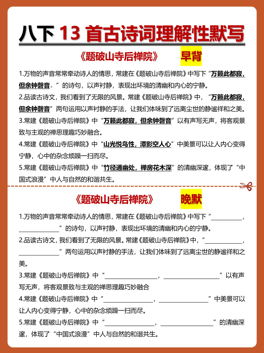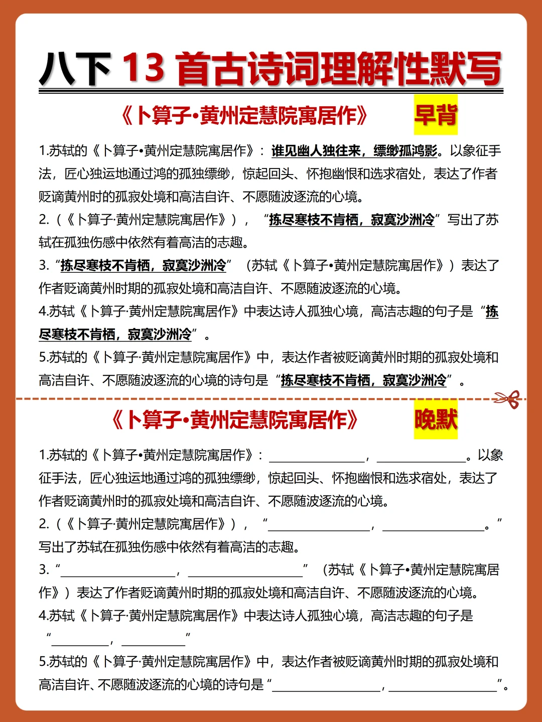 [火R]被问爆的八下古诗词理解性默写-早背晚默小纸条来了,每日10分钟,13天就能搞定古诗词默写!