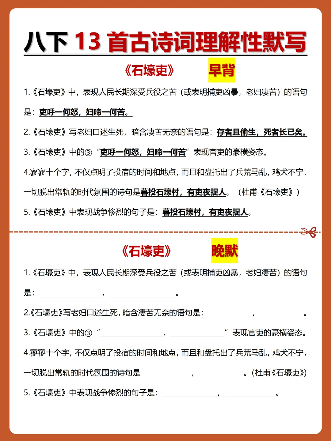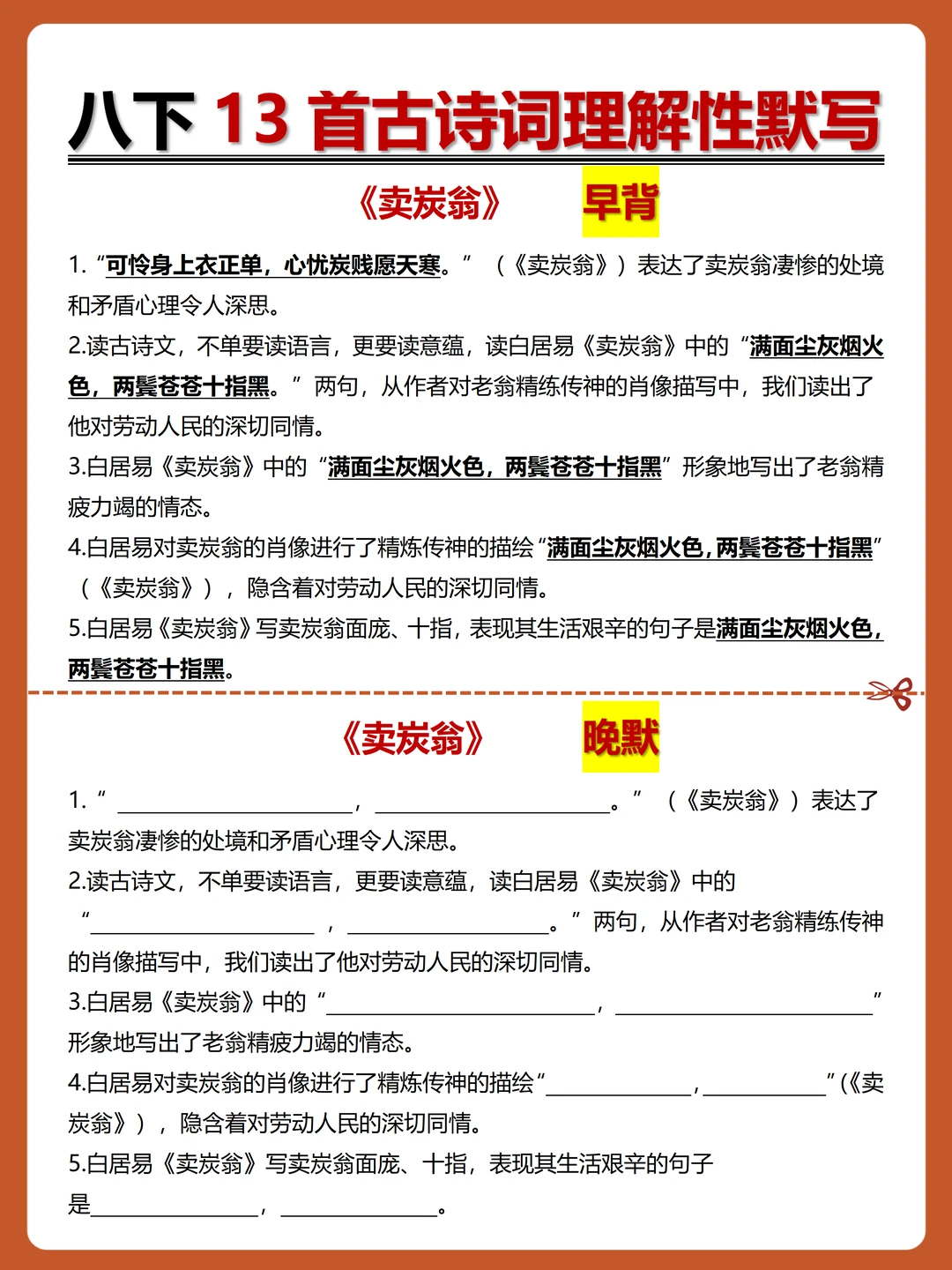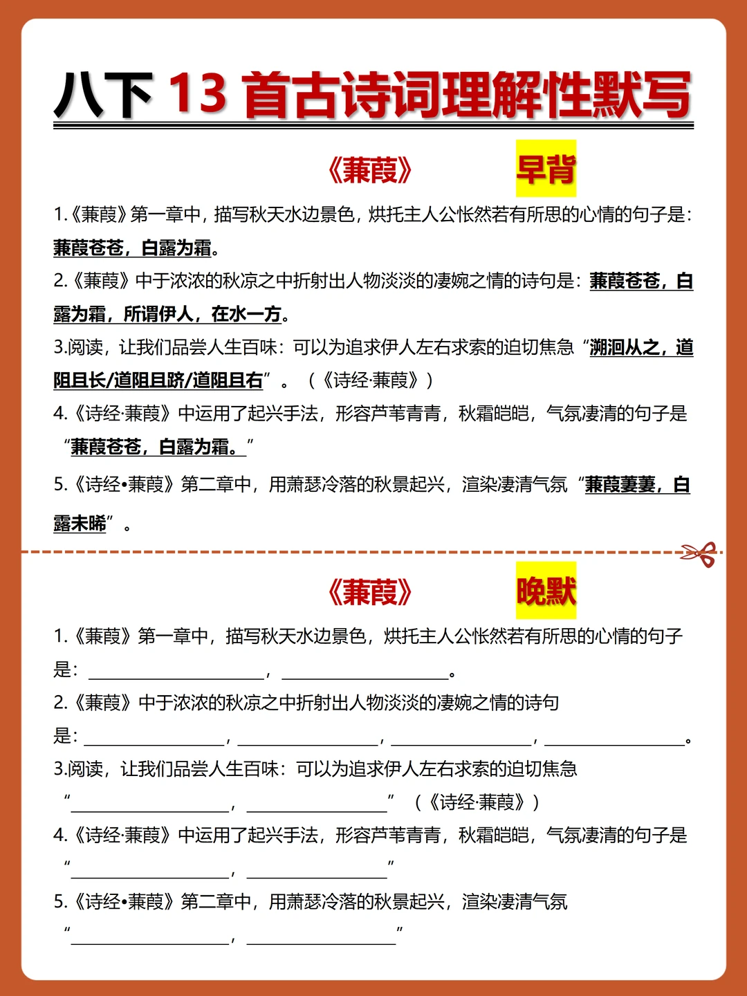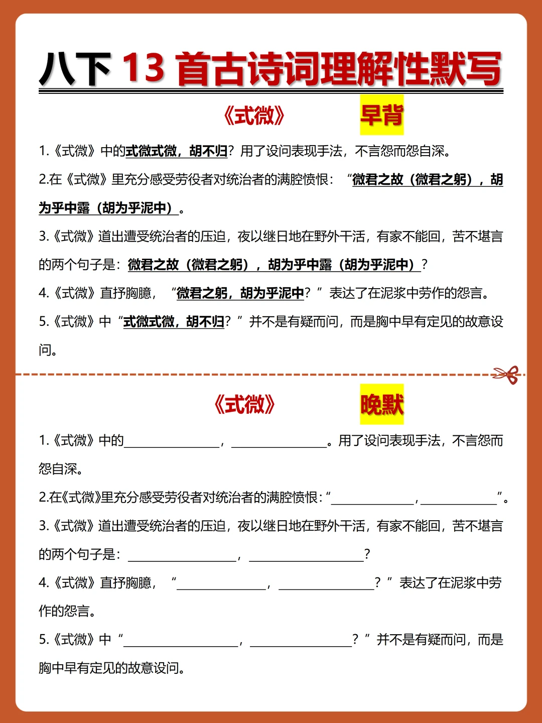 [火R]被问爆的八下古诗词理解性默写-早背晚默小纸条来了,每日10分钟,13天就能搞定古诗词默写!