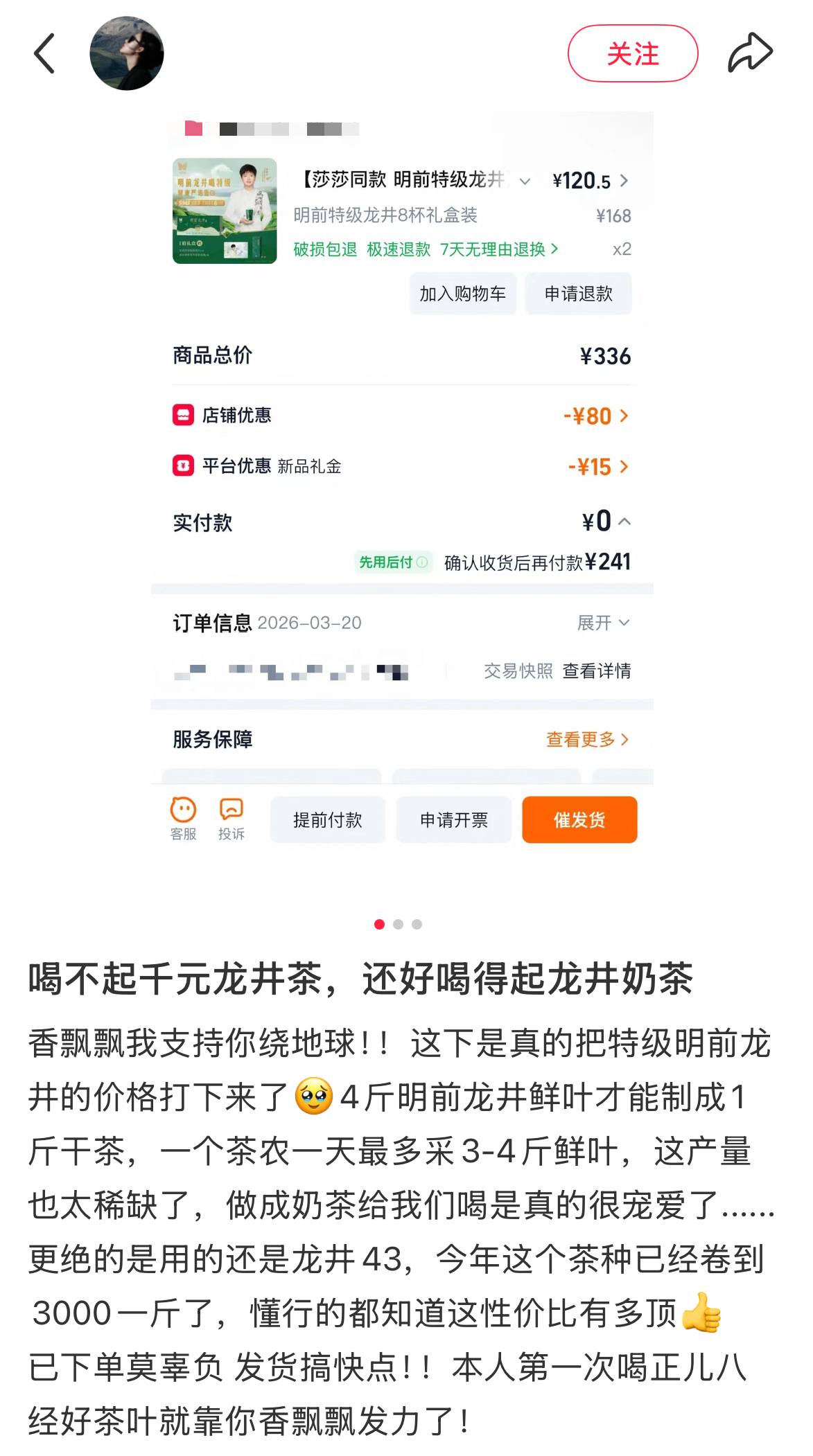 一网友花上万元囤百箱香飘飘拆茶包数芽头也太可爱了吧!消费者:我不信→我数数→对不起,是我格局小了。主打一个真诚,不玩虚的!千元杭州龙井已卷进奶茶赛道