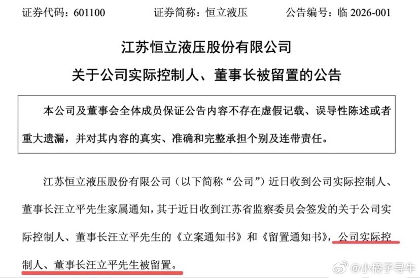 全球机械液压部件龙头恒立液压利空突袭!公司实际控制人、董事长被留置,这样的利空在A股并不少见:新城控股、百润股份、三博脑科、亚钾国际、国光电气、万辰集团等都有相似经历。核心是:和上市公司主体之间权责关系要清晰!多数情况下个人犯错,并不影响上市公司的运营和业绩周期。比如万辰集团成为消费里唯一10倍牛股,亚钾国际跟随行业复苏周期也是走牛市。恒立液压是机器人、机械、电气设备隐形冠军,几乎所有大型机械都会用到的核心零部件!它是A股真正的核心资产之一,本轮牛市也是接近收复历史前高,pe也来到了50倍并不便宜!短期事件不影响公司底色,再者有丰厚利润垫做保证可以游刃有余!