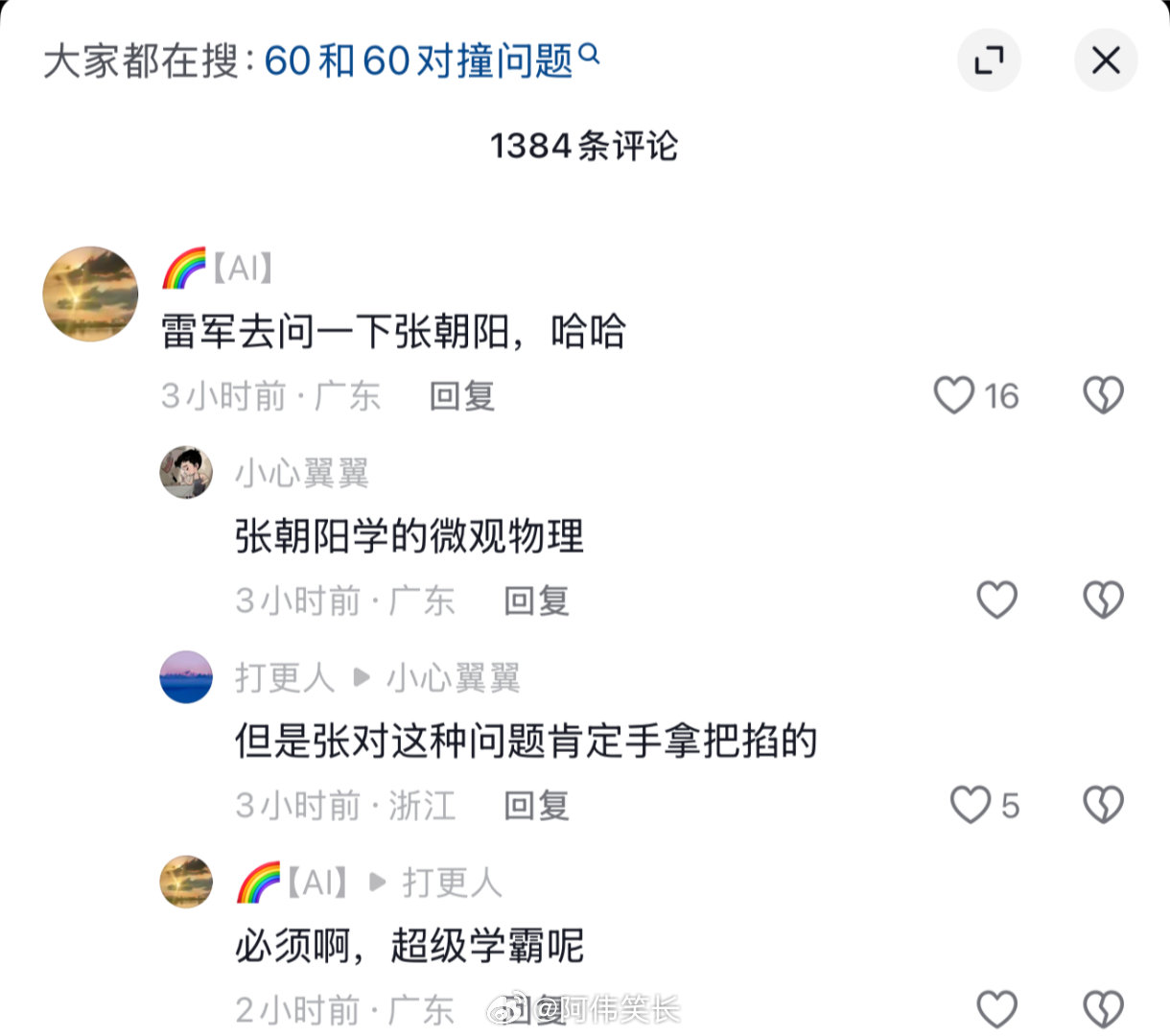 雷军60加60等于120言论引争议发布会后,雷军关于对撞速度的类比在网上持续发酵。有人说这是物理常识,有人指出实际碰撞情况远比速度叠加复杂。众说纷纭之际,张朝阳在关注流转发了相关科普内容,并亲自分析起这道“经典碰撞题”。网友们也看看张朝阳算对了吗