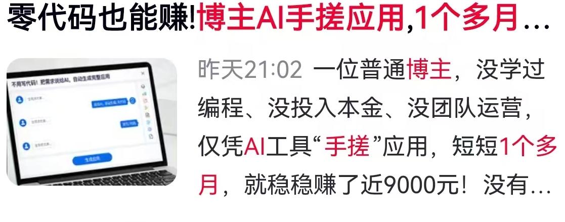 3月19日,一则关于“普通人逆袭”的消息在互联网圈子里炸开了锅。故事的主角叫郭郭,一位曾身处北京高压职场环境的白领。她在辞职一年多后,并没有像很多人预想的那样陷入焦虑或坐吃山空,反而另辟蹊径,靠着AI工具“手搓”应用,在短短1个多月时间里,卖出了近千单,入账近九千元。 这事儿听起来多少带点魔幻色彩。没学过编程、没投入本金、没团队运营,这“三无”配置放在以前,想创业赚钱简直是天方夜谭。但现在的风向变了,AI技术下放,让技术门槛几乎被夷为平地。郭郭的案例,恰恰给那些渴望副业、渴望转型的普通人,打了一剂强心针。 咱们先算笔细账。近千单,赚了近九千,折合下来一单也就十块钱左右。网友“fireflynj”在评论区直言:“近千单才赚9千,一单就十元左右呀。”这话说得实在,但也恰恰是这不起眼的十块钱,道出了这个商业模式的精髓。它不是那种甚至需要融资、画大饼的高科技创业,而是实打实的“卖铲子”生意。低客单价,意味着决策成本低,用户买单痛快,只要需求抓得准,走量并不难。 很多人好奇,这到底是个什么应用?虽然报道中未提及具体产品名称,但从郭郭的操作路径来看,这并非什么高深莫测的黑科技。这就是当下很火的“零代码开发”。利用AI工具,通过自然语言描述需求,让AI生成代码或直接封装成应用。这种产品,往往切中的是特定场景下的特定需求,比如情感咨询、职场模板、学习辅助工具等。就像网友“百度网友eb3e6805cc0”所问:“什么应用这么赚钱?看起来操作难度不大,我也想试试搞个副业了。”这种想法很有代表性,说明大家已经敏锐地嗅到了机会。 当然,评论区里也有不同的声音。比如IP地址显示在福建的网友“as154503483”评论道:“女权天书?”这种质疑声在互联网上并不罕见,任何关于女性职场转型或独立创业的话题,总容易被贴上标签。但我们抛开这些争议,回归到商业逻辑本身,郭郭的成功其实做对了两件事:一是信息差,二是执行力。 所谓信息差,就是很多人还不知道AI已经进化到能“手搓”应用的程度;所谓执行力,就是她想到了就去做了,并且快速在小红书上找到了买家。小红书这个平台,聚集了大量追求生活品质、乐于尝鲜的年轻用户,对于十几块钱的“小工具”,他们不仅买得起,更愿意为“新奇特”买单。 这也给咱们提了个醒。现在的创业逻辑变了,不需要非得租办公室、招员工、写商业计划书。一人一机一AI,就是一个独立的经济体。郭郭的经历证明了,普通人利用工具赋能,完全可以实现个人价值的变现。哪怕是一单赚十块,积少成多,在一线城市的职场外,也能拼出一条活路。 不过,咱们也得保持清醒。这种“手搓”应用,技术壁垒确实不高,这意味着竞争很快就会进来。网友“fireflynj”算的那笔账,其实也是一种提醒:靠低价走量的模式,需要源源不断的流量支持。一旦跟风者众,流量成本上升,或者AI工具本身开始收费,利润空间就会被压缩。所以,想抄作业的朋友,光看到“赚九千”是不够的,还得思考怎么持续发现新需求,怎么在这个“低门槛”的赛道里,跑出自己的“护城河”。 总的来说,郭郭的故事不是让你辞职去搞AI,而是告诉我们在AI时代,工具不再是程序员的专属武器。无论你是身在北京的职场老兵,还是身在河南、江苏的普通网友,只要你能敏锐地捕捉到哪怕一个小小的需求,AI就能帮你把想法变成产品,把产品变成钞票。这或许才是这个新闻背后,最值得我们深思的价值。 以上内容仅供参考和借鉴