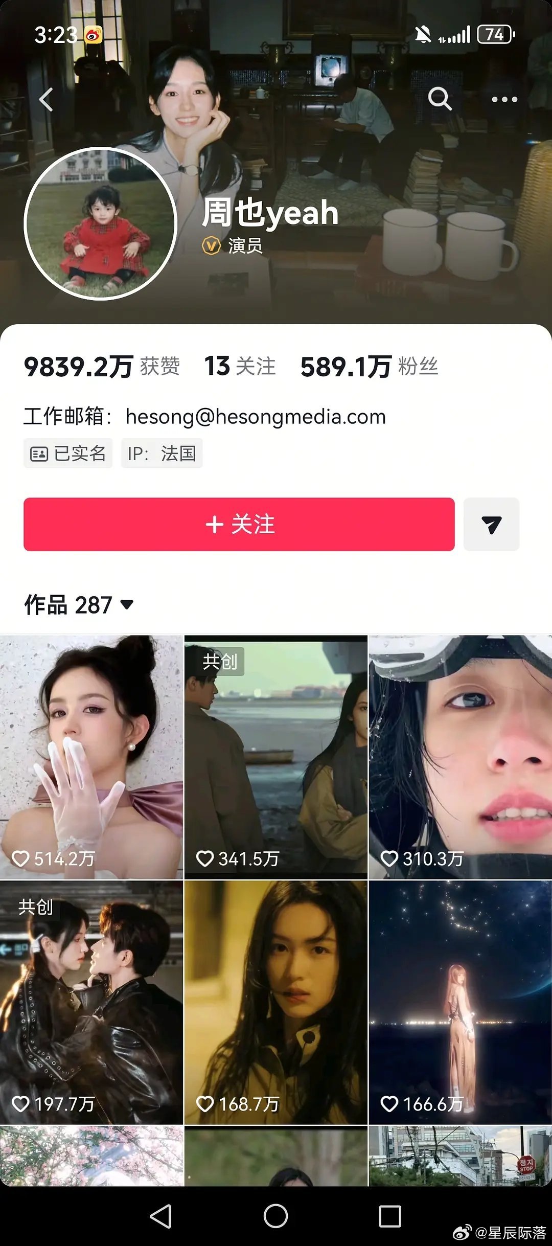 周也 章若楠抖前三页数据对比(电影先不算)