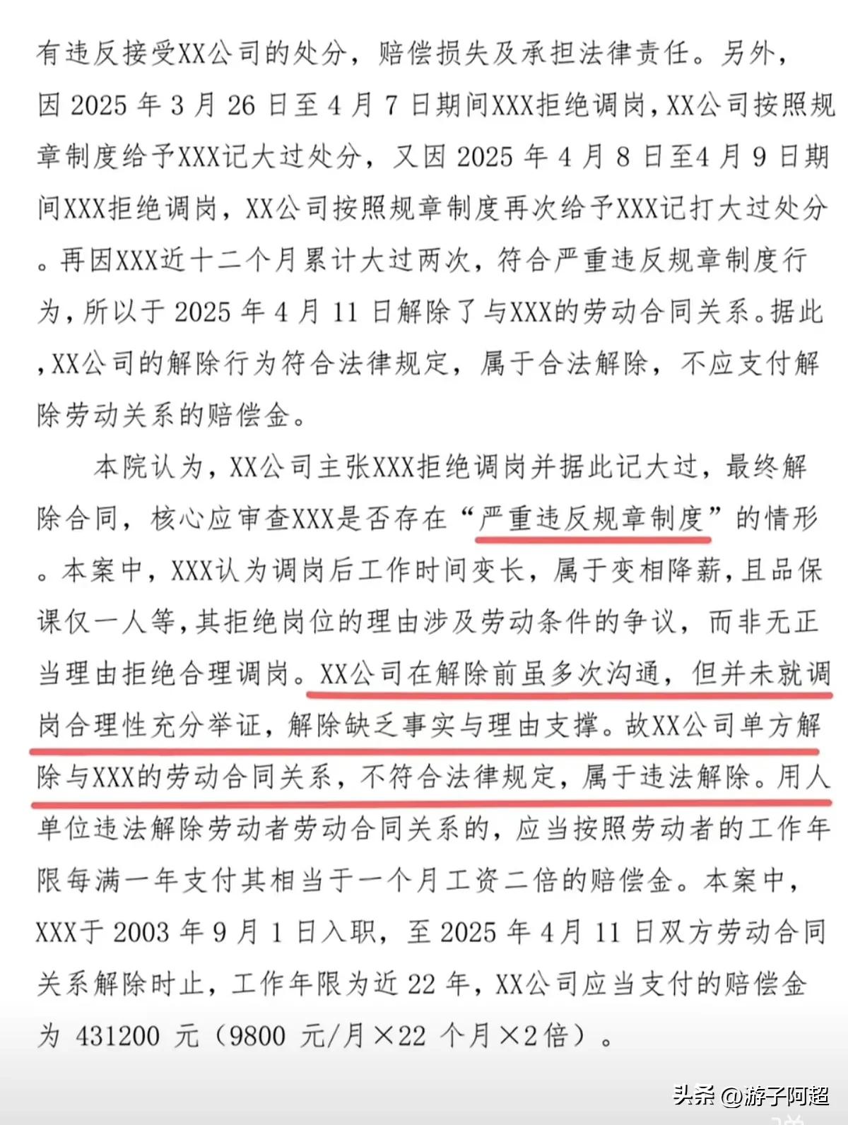 近日,深圳市某公司因违法解除劳动合同,经法院一审判决赔偿43万元。 该公司辩称自2020年起经营业绩持续下滑,长期处于亏损状态,故单方面将业务部课长调任至品保部课长,该员工拒绝接受此调整,公司遂对其作出记过处分并解除雇佣关系。 该主管自2003年入职以来,已与公司签订无固定期限劳动合同,担任课长职务,尽管调岗后的职位及薪酬待遇未发生变动,但工作内容存在显著差异。 公司在抗辩过程中表示,在协商过程中曾恳请员工理解公司面临的经营困境。 当前,尽管外界普遍认为经济大环境不好,劳动仲裁案件可能更倾向于保护企业利益。 但只要能够提供充分证据证明对方存在违法行为,即使仲裁结果不理想,司法程序仍会确保公正裁决。