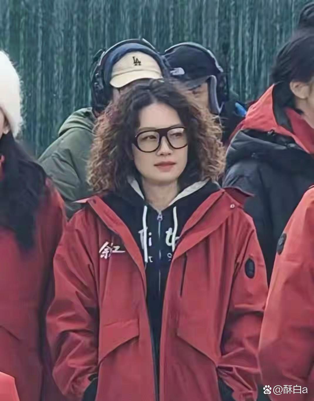 马伊琍换新发型,黄色羊毛卷搭配黑框眼镜,温柔又有气质