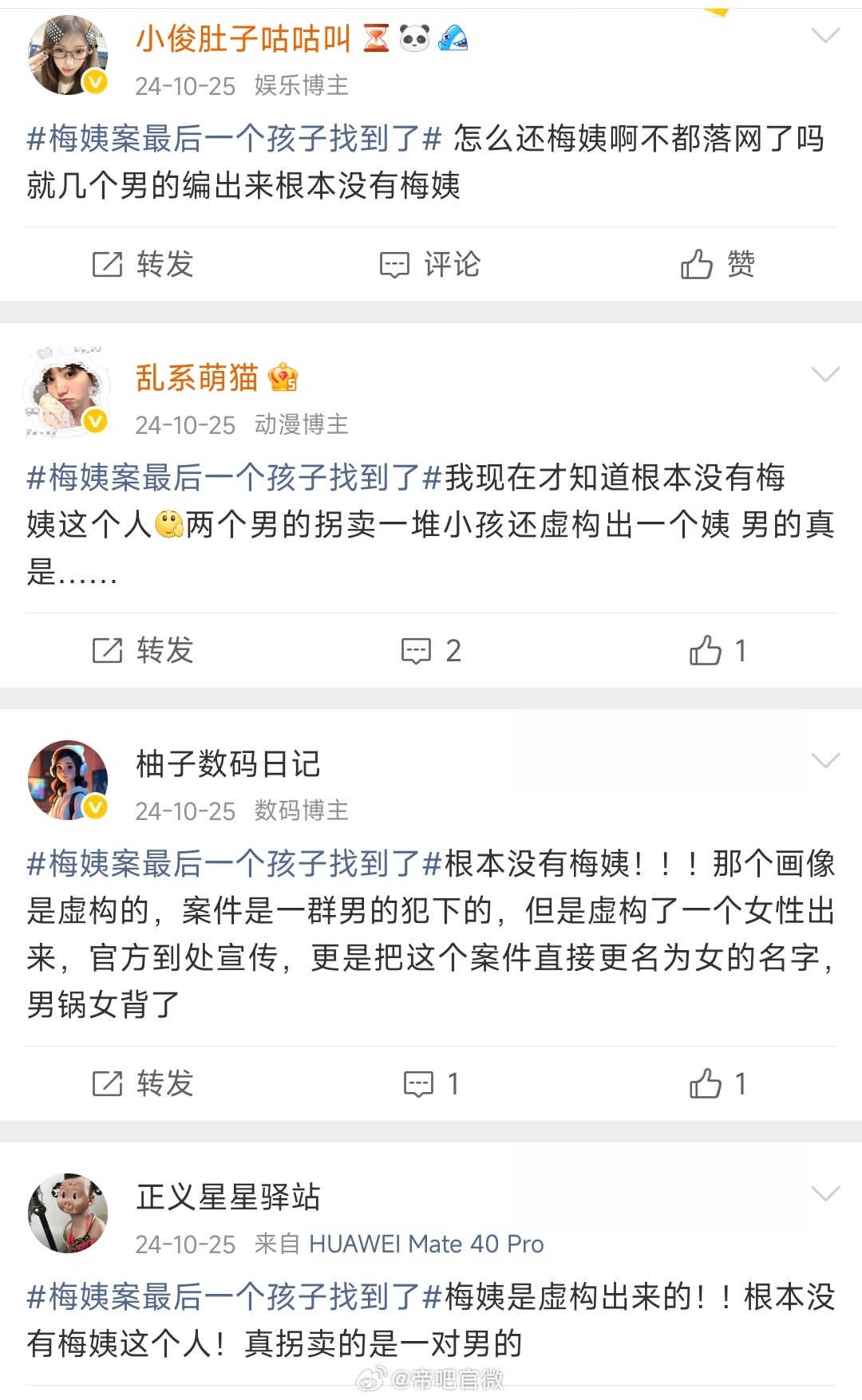 误导了多少人,不想给这些人打码,当初这些话术呜呜泱泱的到底是图什么?梅姨被逮捕谢某某就是梅姨