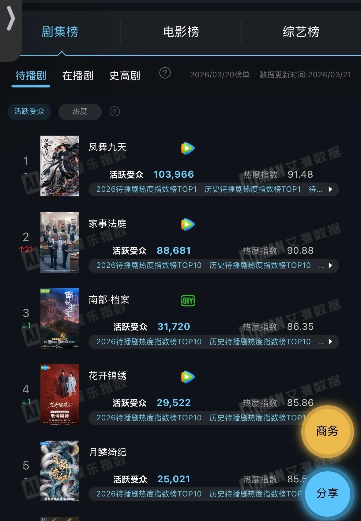 龚俊《凤舞九天》《家事法庭》包揽在播剧、待播剧活跃受众TOP1 TOP2!!!活粉也太多了🔥🔥🔥凤舞九天家事法庭