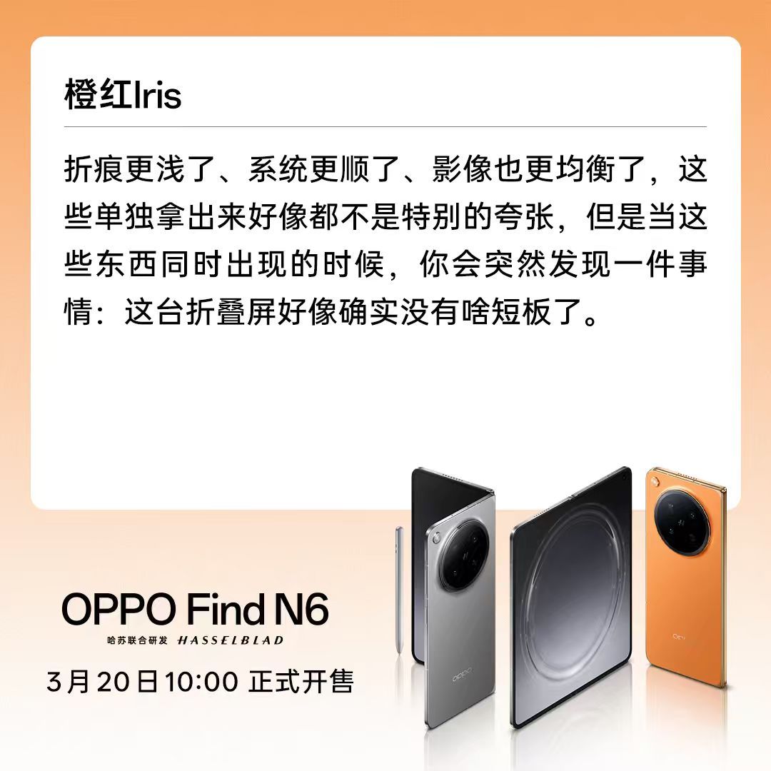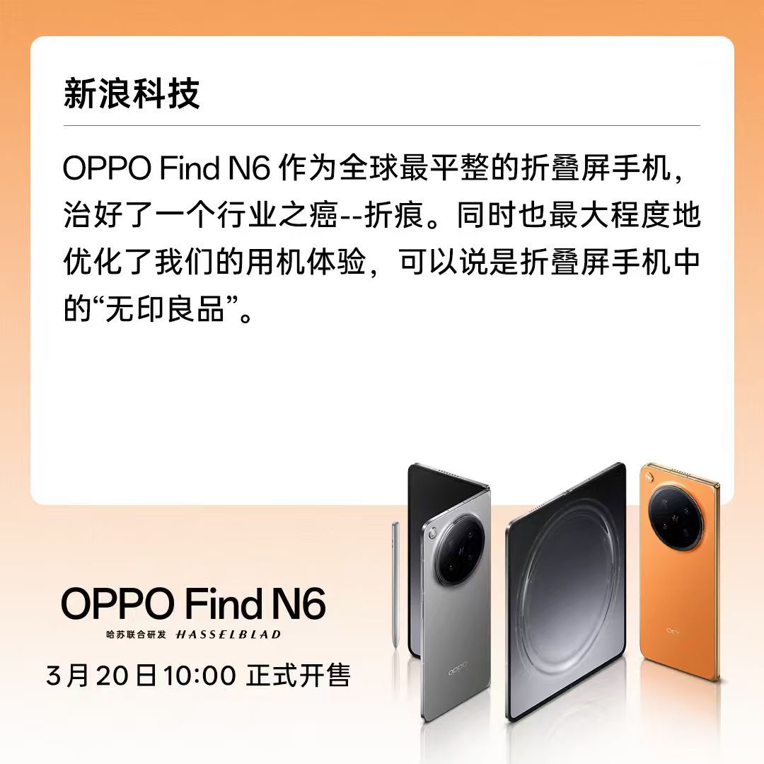 OPPO Find N6 这回是真成了!昨天上午10点开售,直接刷新了天猫、京东