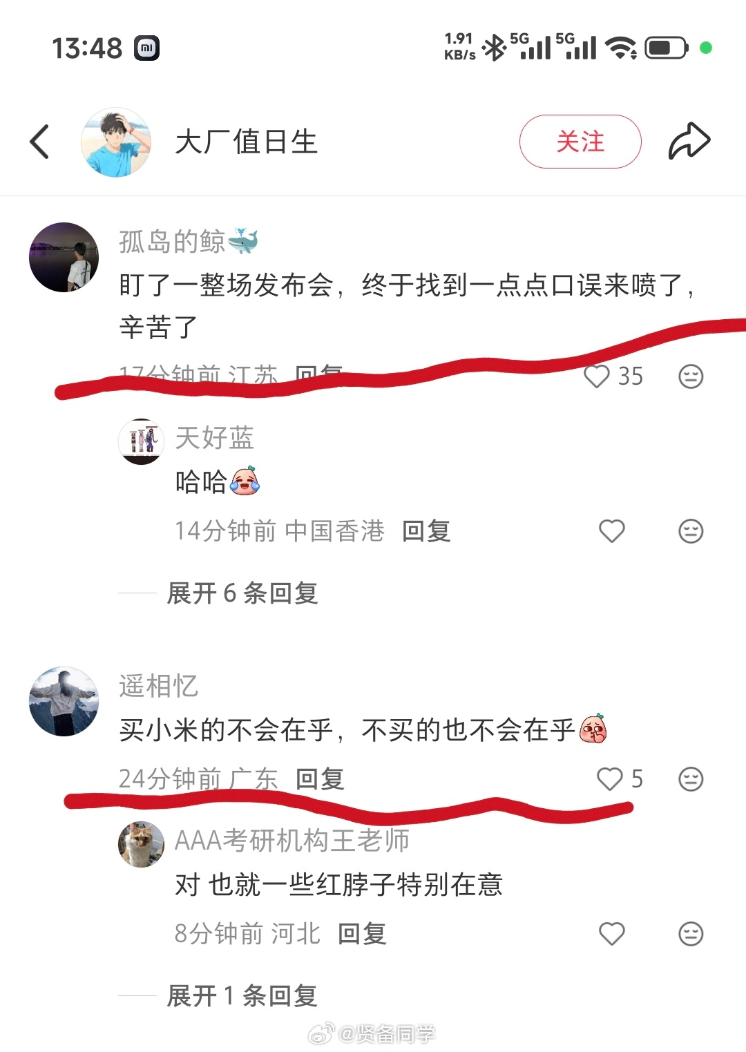 网友道出真相:有些人盯了小米汽车一整场发布会,终于找到一点点口误来喷了,辛苦了!