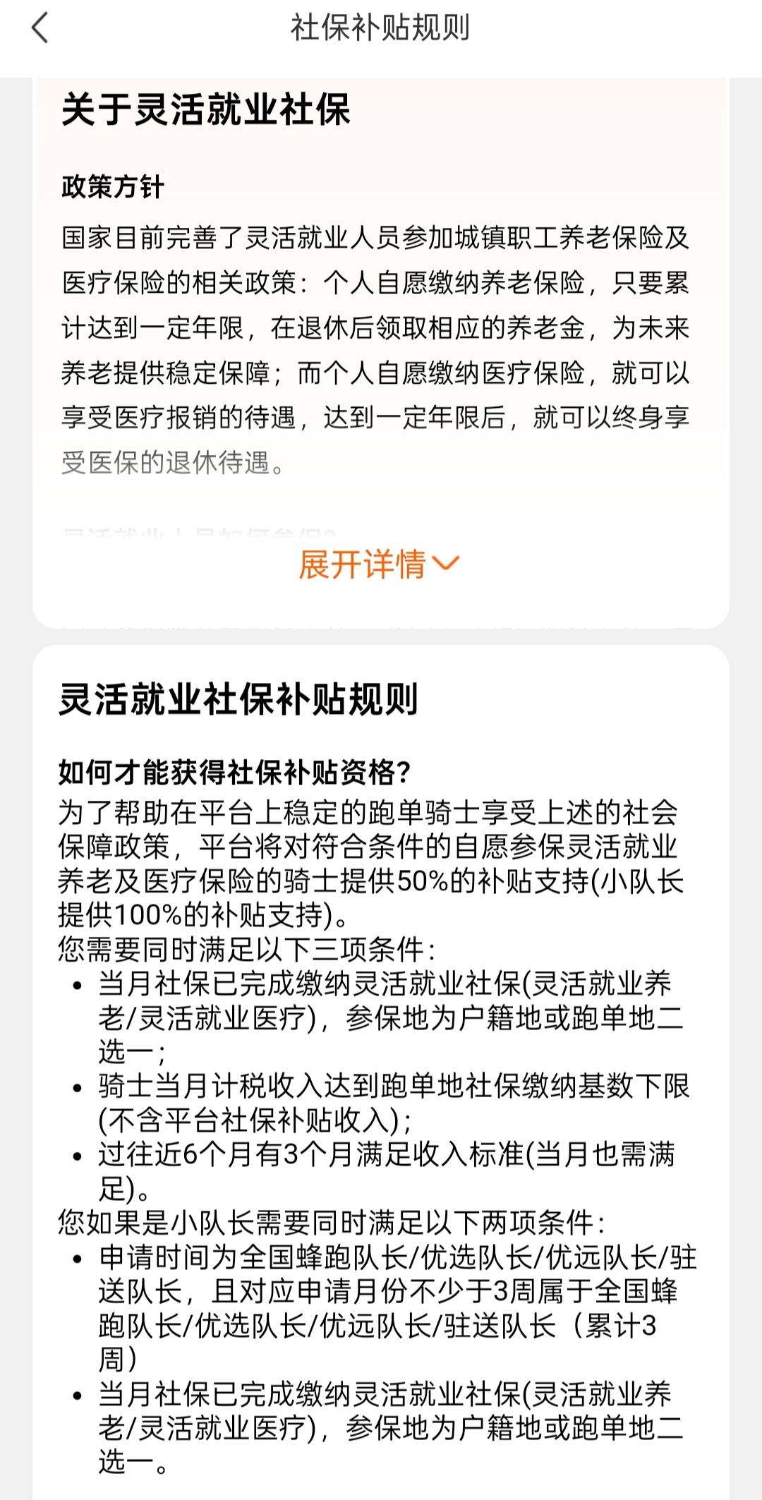 跑蜂鸟众包终于迎来了利好,灵活就业社保补贴50%,小队长100%全额补贴。 条件也不算高,骑手只要近6个月有3个月满足当地社保基数下限即可,申请的当月也必须满足。 这样一来以天津为例,养老补贴一项就能补贴512.4元。 这项政策确实给交灵活就业社保的骑手减了一半负担,相比美团是晚了一年,相比京东全职才有,蜂鸟众包是全覆盖。 这样一来,平台虽然有了很大支出,却也吸引更多骑手来跑单,粘性大大增加,尤其对于约束性不强的众包。只要你想拿补贴就必须跑够钱数和天数。骑手也有了平台归属感和跑单动力。 对于单价会不会变低只能拭目以待了。