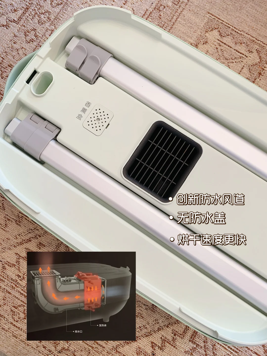 没有防水盖阻碍风力,热风顺畅循环