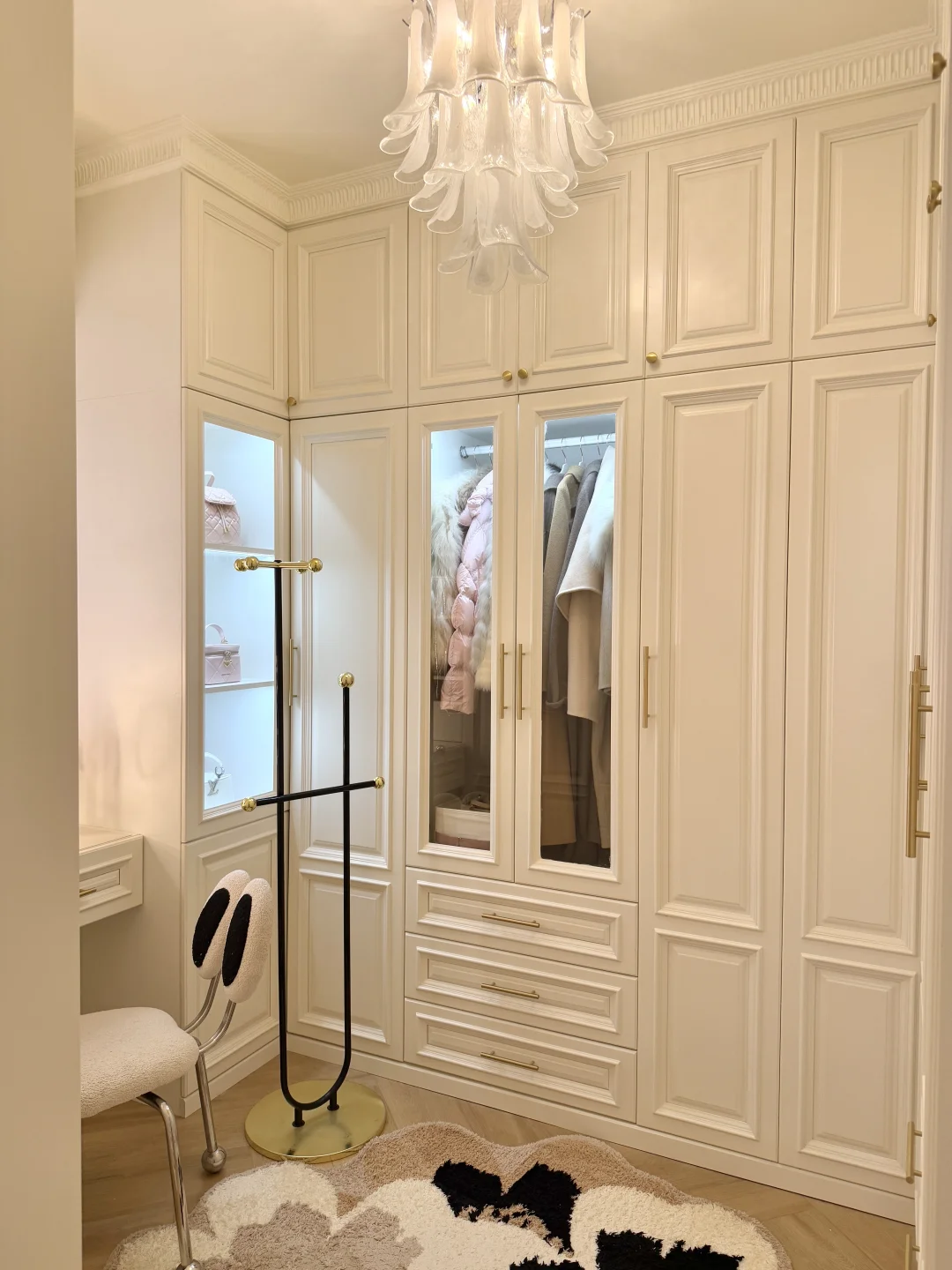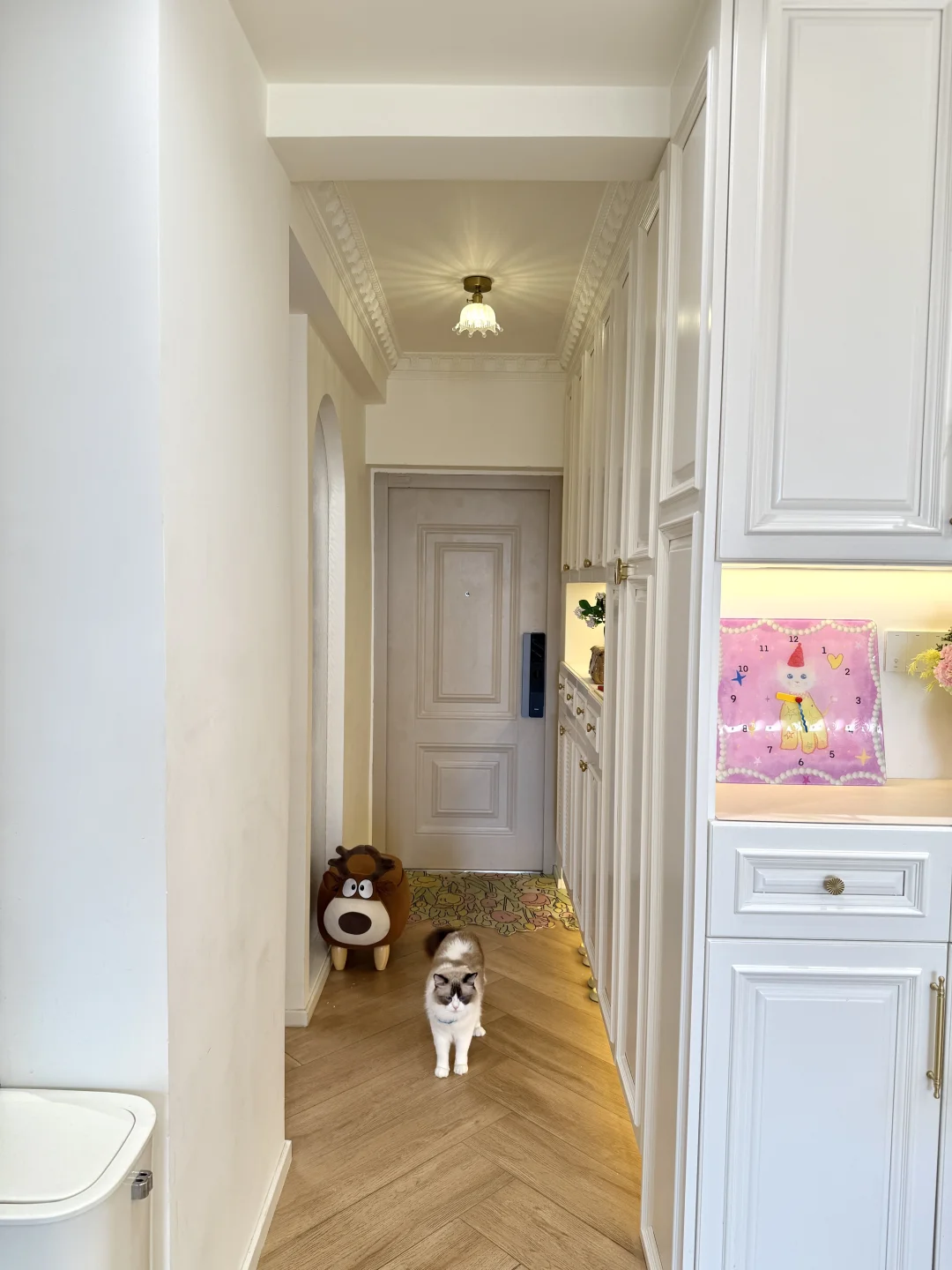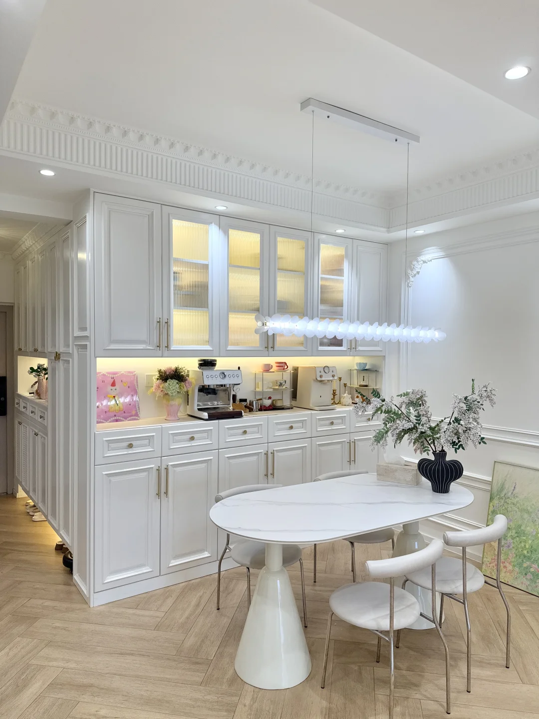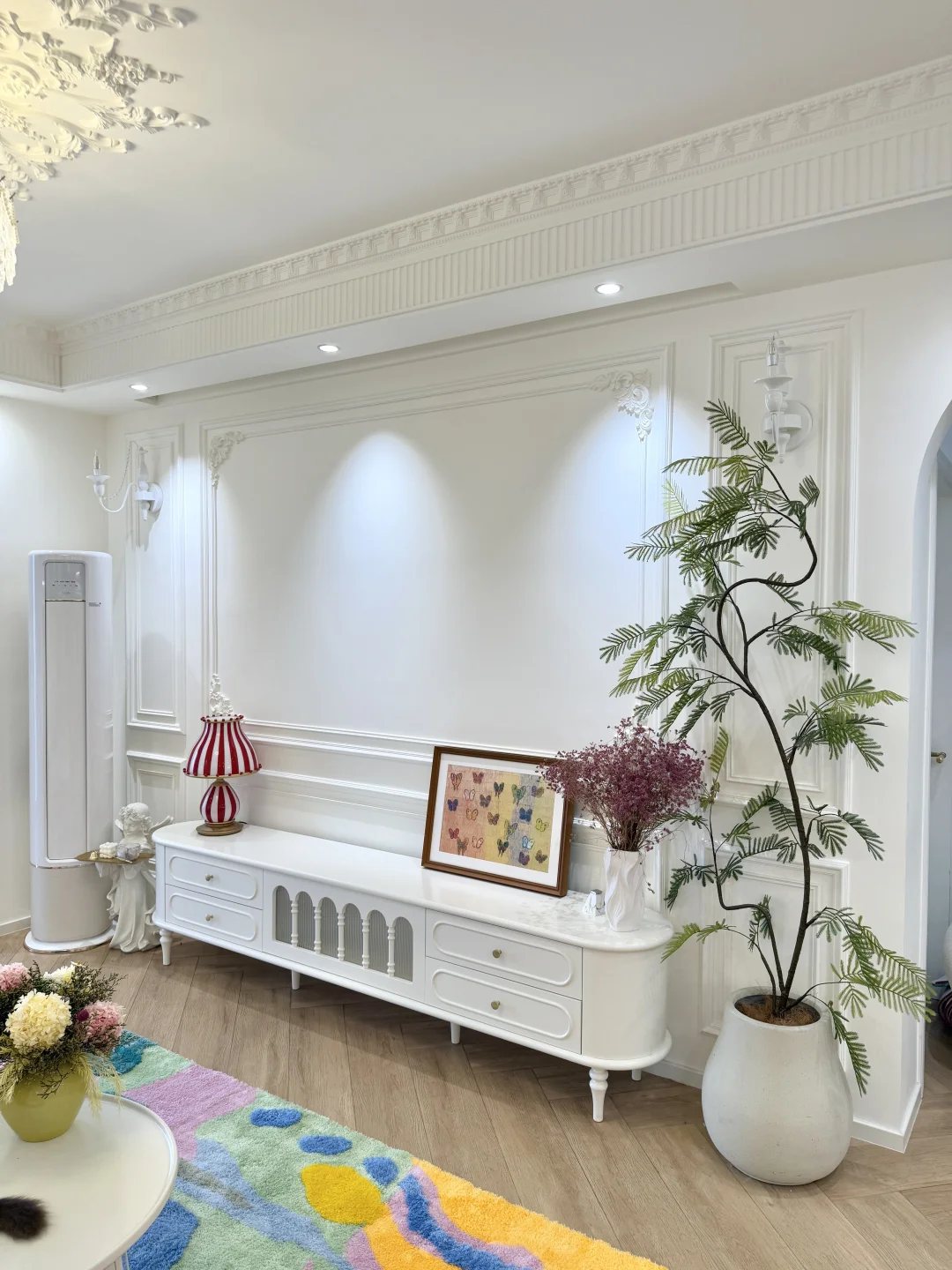 花40w在小县城买房 又装成法式奶油风 今年入住第3年真的越住越好住 分享下我的装修小思路吧 ❶:墙面通刷珍珠白+pu线条造型耐看还不容易过时 ❷:地面通铺20*90人字拼木纹砖,比木地板更省钱 ❸:柜子买的板材,让木工打的柜体,柜门是定制的 ❹:阳台一半封闭,一半做了花园和洗衣晾晒区 ❺:厨房做了开放式,跟餐厅动线一体更显大 ❻:没留客房,让木工做了衣帽间,给对象用真香 ❼:软装以浅色系为主不翻车 ❽:别找熟人帮装修,就连亲戚也不行