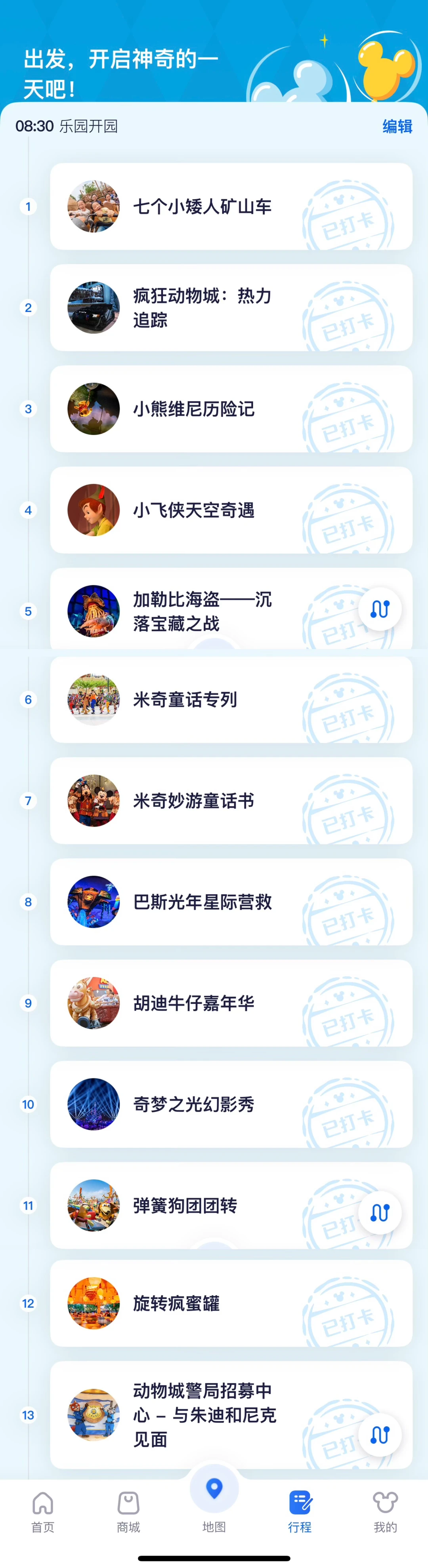 提前下好迪士尼APP,有排队时间和地图🗺️