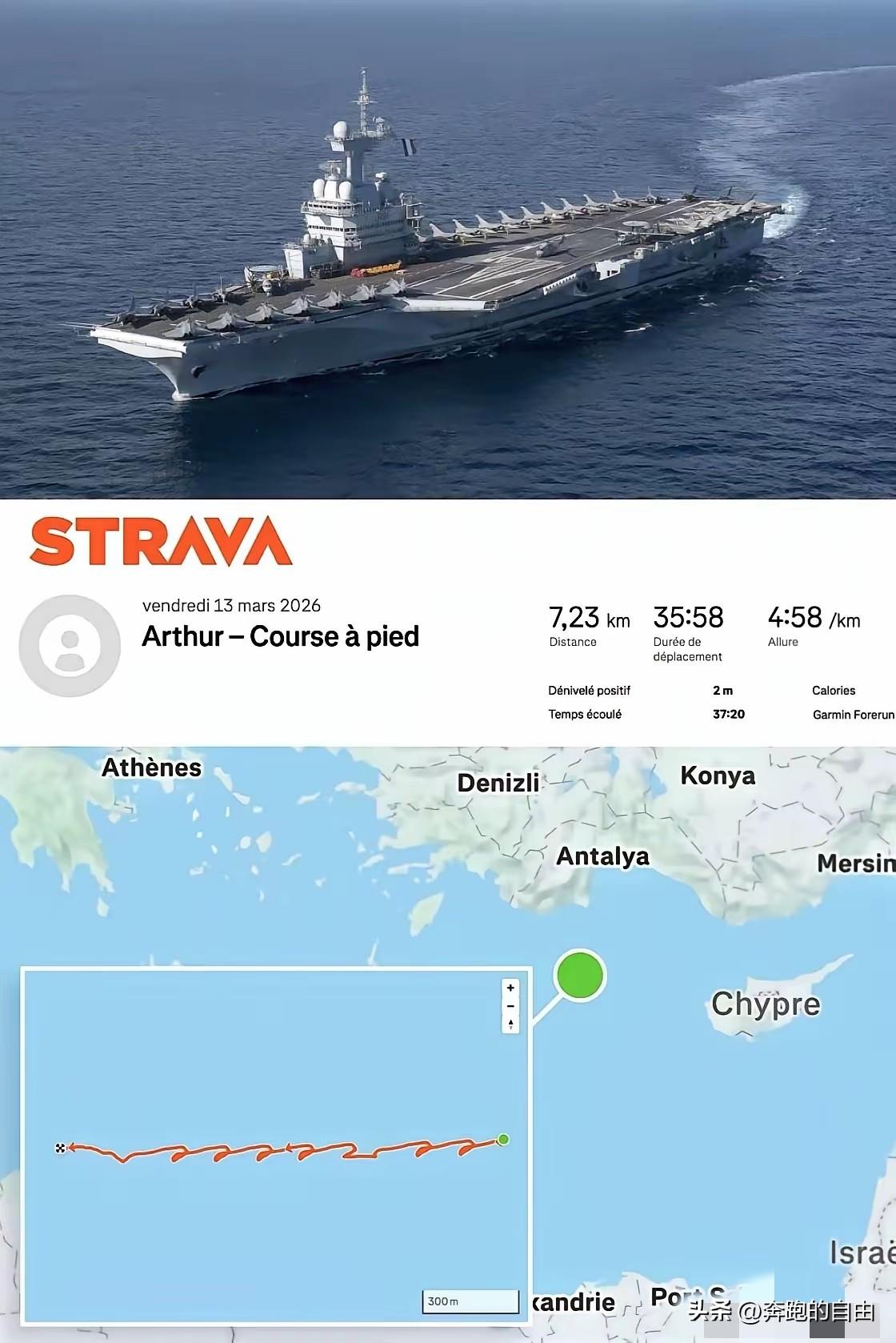 果然世界就是一个巨大的草台班子! 据外媒报道,法国“戴高乐”号航母上有个年轻军官,照常在甲板上慢跑锻炼。戴高乐号甲板长274米,他绕圈跑了35分多钟,足足7公里出头,用Garmin手表记录全程,然后直接同步上传到Strava——关键是,他的账号是公开的! 这段公开的运动轨迹意外暴露了关键位置信息,外界可以轻松判断出戴高乐号的航行区域,整艘舰船的实时动态被看得一清二楚。 戴高乐号是法国海军的核心舰船,事发时正在地中海区域执行海上任务,航行位置被公开,给舰船的正常航行和安全管理都带来了不小的麻烦。 法国相关部门很快做出回应,确认这名军官的行为违反了内部管理规定,涉事人员已被停职接受调查,同时要求相关人员加强信息安全方面的学习。 这已经不是法国海军第一次出现这类问题,此前就有船员因公开健身轨迹,泄露了舰船相关的部署和航行周期信息。 美军早在多年前就禁止相关人员使用这类带定位功能的健身软件,就是因为软件的公开数据,曾暴露过不少海外驻地的具体位置。 明明有前车之鉴,相关管理要求却没有真正落实到位,规章制度只停留在纸面上,才让这种本可以避免的问题一再发生。 一块普通的运动手表,一款常用的健身软件,就轻易突破了严密的内部管理,看似严谨的舰船管理,被一个小细节彻底暴露了问题。 数字时代的信息安全早已不只是保护文件和通讯,智能设备的定位记录,成了最容易被忽视的信息泄露渠道。 舰船的航行位置关系到整船人员的安全,一次随意的运动记录分享,完全没考虑到可能带来的安全风险,这样的安全意识实在让人担心。 涉事军官可能只是想分享自己的日常锻炼,完全没意识到公开定位会带来麻烦,基础的安全防范意识严重不足。 相关部门事后处理得很及时,却也暴露出日常管理的漏洞,事前不做好管控,等到问题出现再补救,往往已经造成了影响。 全球不少国家的相关人员都曾犯过类似错误,一条运动轨迹、一次随手分享,不起眼的小事,总能让严谨的管理出现漏洞。 这件事也给所有人提了醒,带定位功能的软件和设备,很容易泄露个人行踪,保护自身信息安全,是每个人都要重视的事。 再先进的舰船设备、再完善的管理体系,也扛不住基础的人为疏忽,很多看似强大的体系,往往毁在不起眼的小细节上。 信息安全从来没有小事,一条运动记录、一次公开分享,都可能带来意想不到的问题,时刻保持谨慎才是守护安全的关键。 这件事也让大家看清,很多看似专业严谨的体系,一旦缺少了责任和细节把控,就会出现让人哭笑不得的疏漏。 各位读者你们怎么看?欢迎在评论区讨论。
