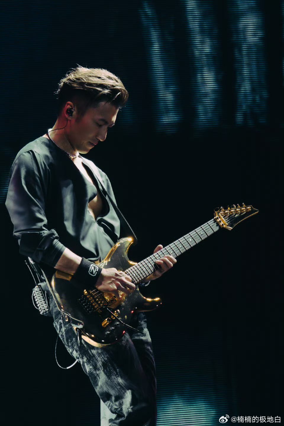 谢霆锋的屁股在发光深圳演唱会造型再上新高度——不是深V,是镶钻裤!灯光一打,闪
