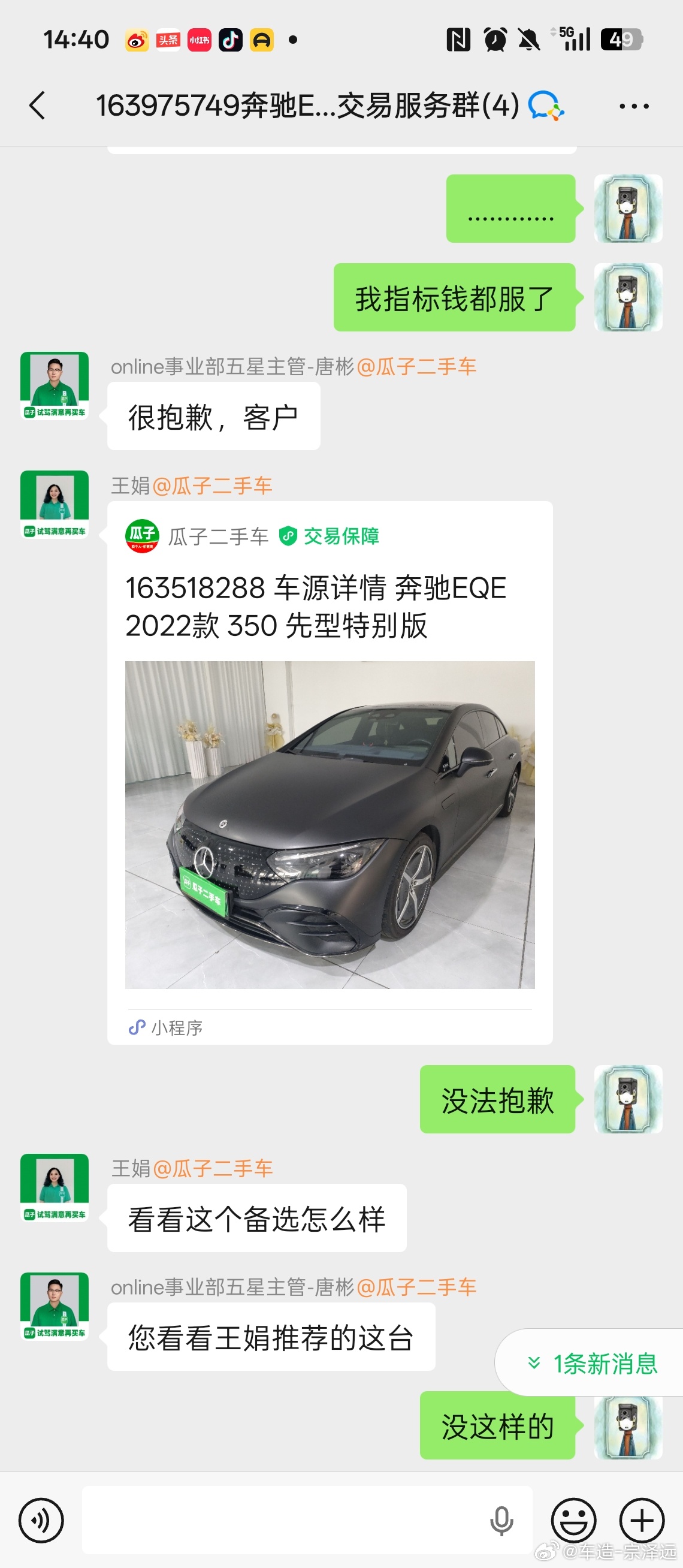 你们就是这么坑人的还在搞挂羊头卖狗肉那一套我三天前交了订金锁车,销售拉群让我租指标提车,今天我花了2万租好指标找他们,告诉我车主不卖了,给我推别的车源,一分钱补偿没有。这不就是早年间二手车诈骗那一套么你们销售真给我逗乐了,跟我说“我有承担风险的义务”,但我是真金白银把订金交给了你们平台啊。二手车