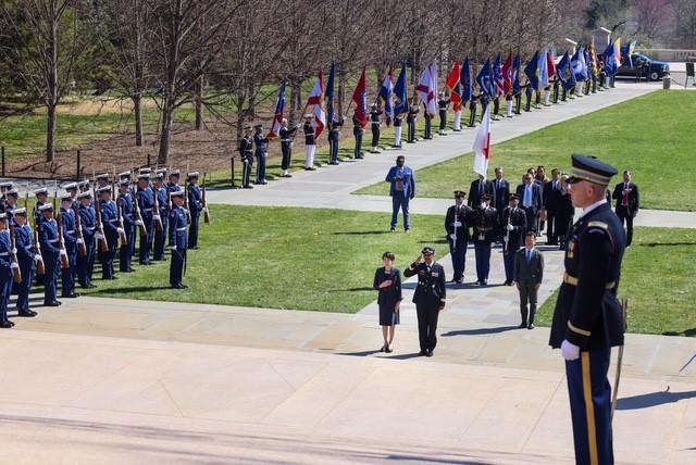 高市早苗:今天上午,我参观了位于华盛顿特区的阿灵顿国家公墓。 当日本和美国的国歌齐声高唱,在列队的美国军人营造的庄严肃穆的气氛中,我一步步走向无名烈士墓,缅怀那些为国捐躯的烈士。 我们献上鲜花,祈祷逝者安息。 我重申了我对和平的承诺。